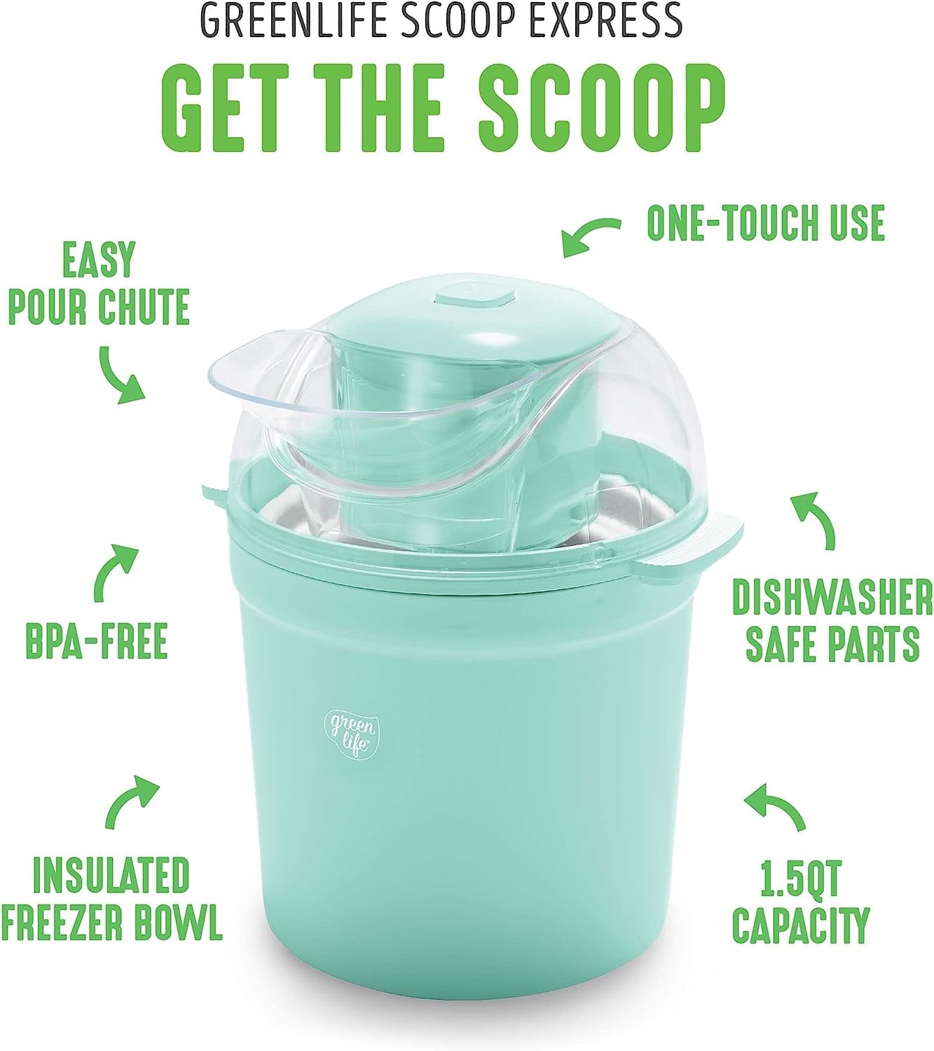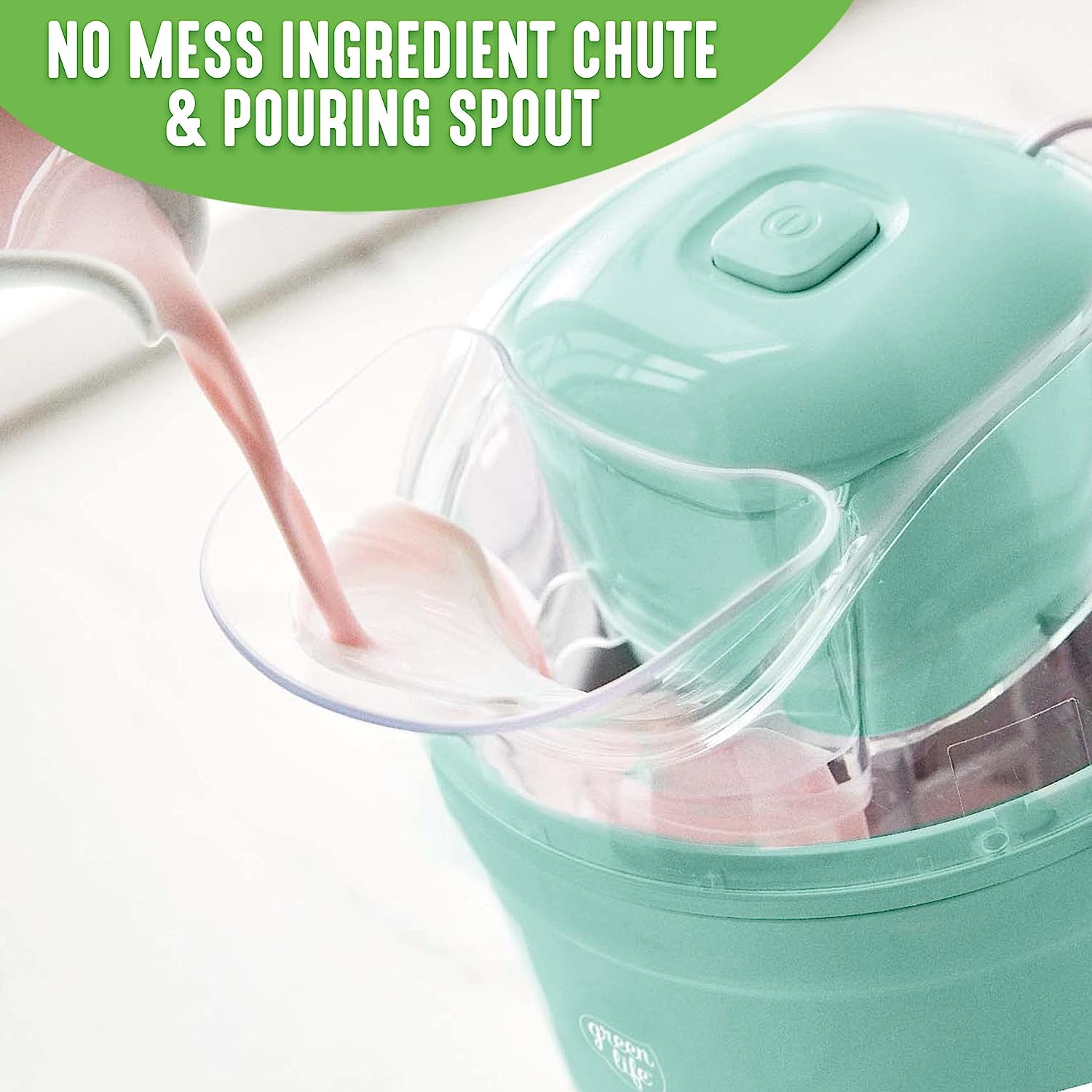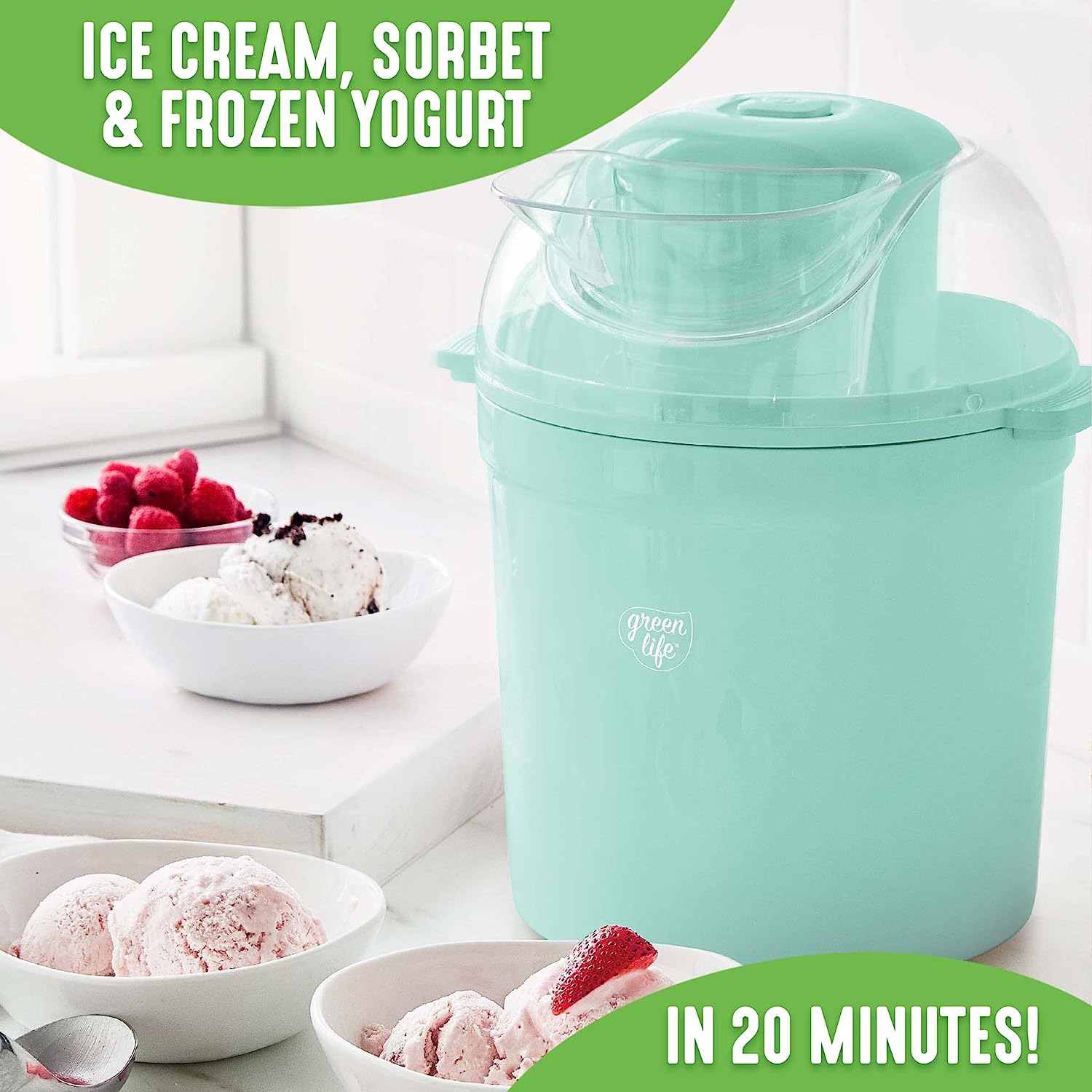 GreenLife 1.5QT Electric Ice Cream, Frozen Yogurt and Sorbet Maker with Mixing Paddle, Dishwasher Safe Parts, Easy one Switch, BPA-Free, Turquoise