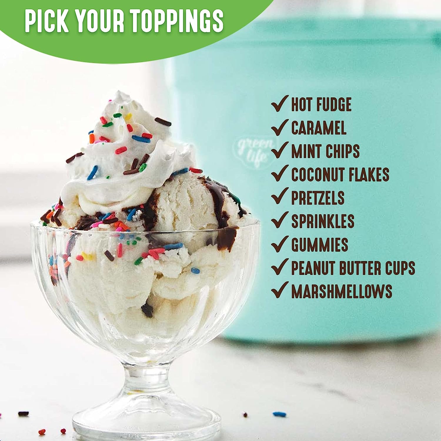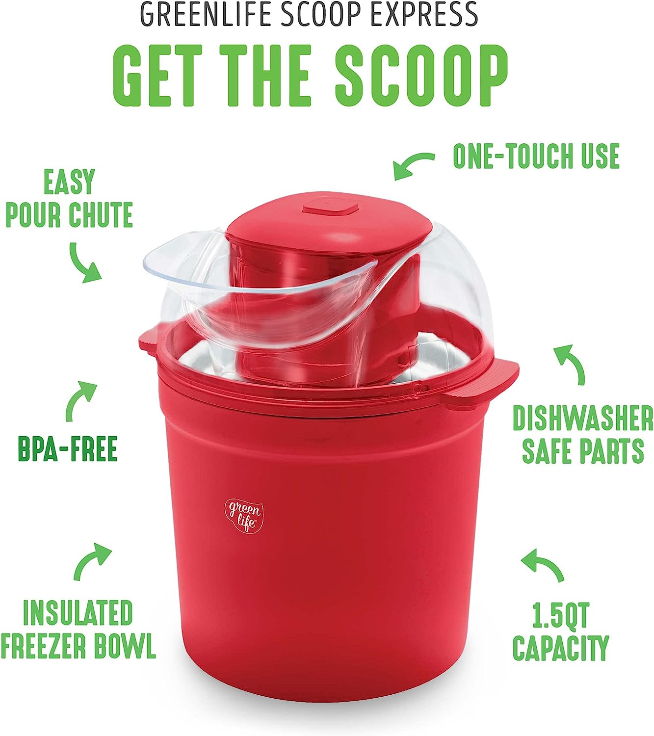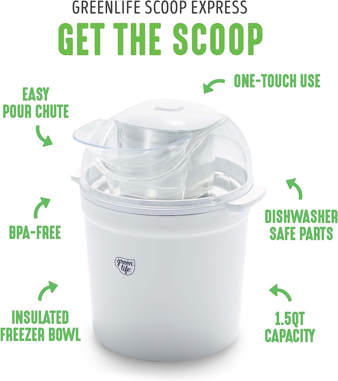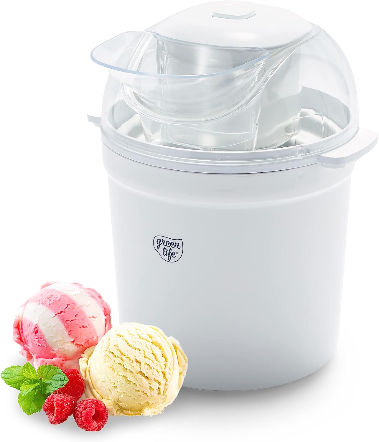 GreenLife 1.5QT Electric Ice Cream, Frozen Yogurt and Sorbet Maker with Mixing Paddle, Dishwasher Safe Parts, Easy one Switch, BPA-Free, Turquoise