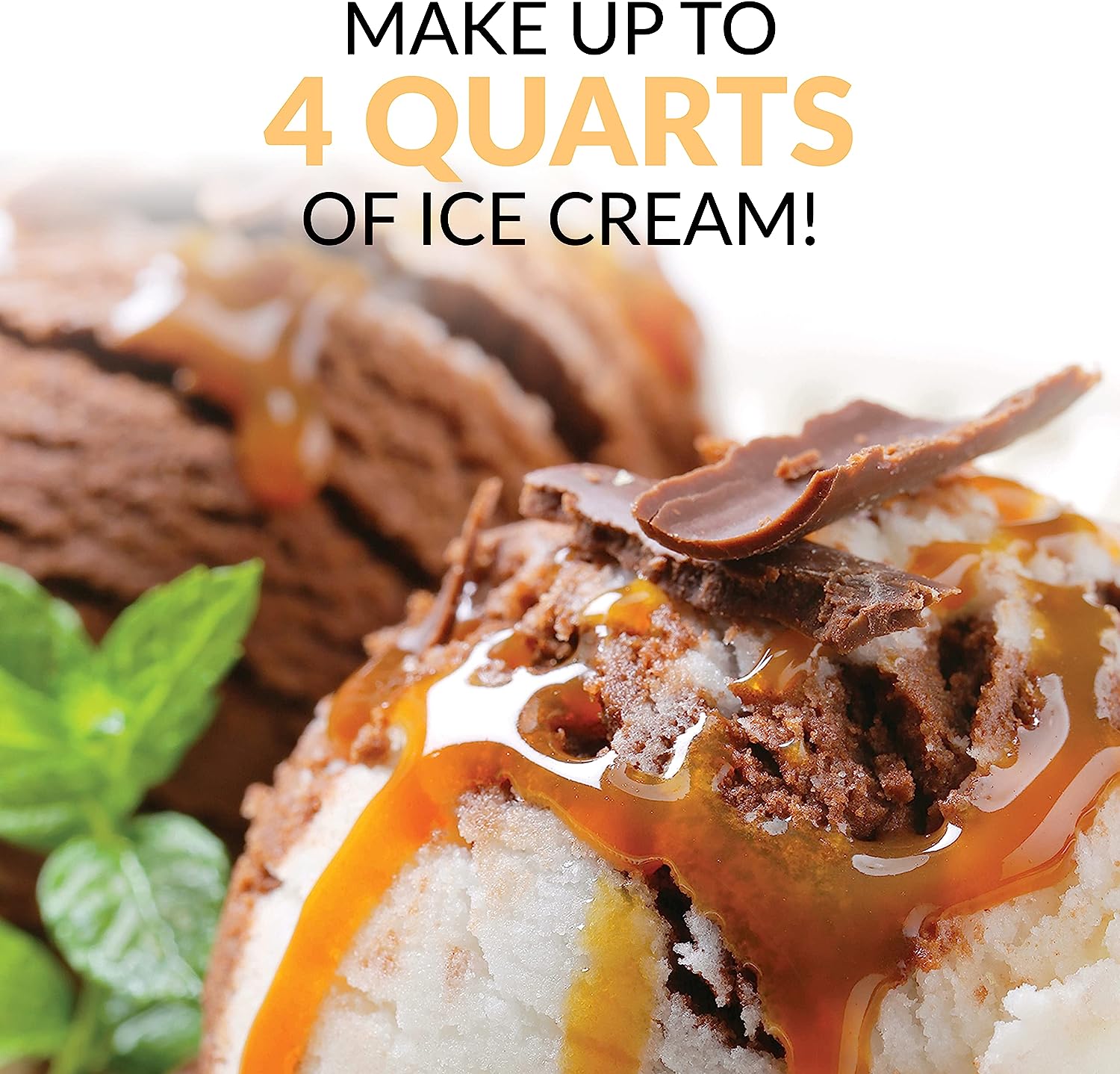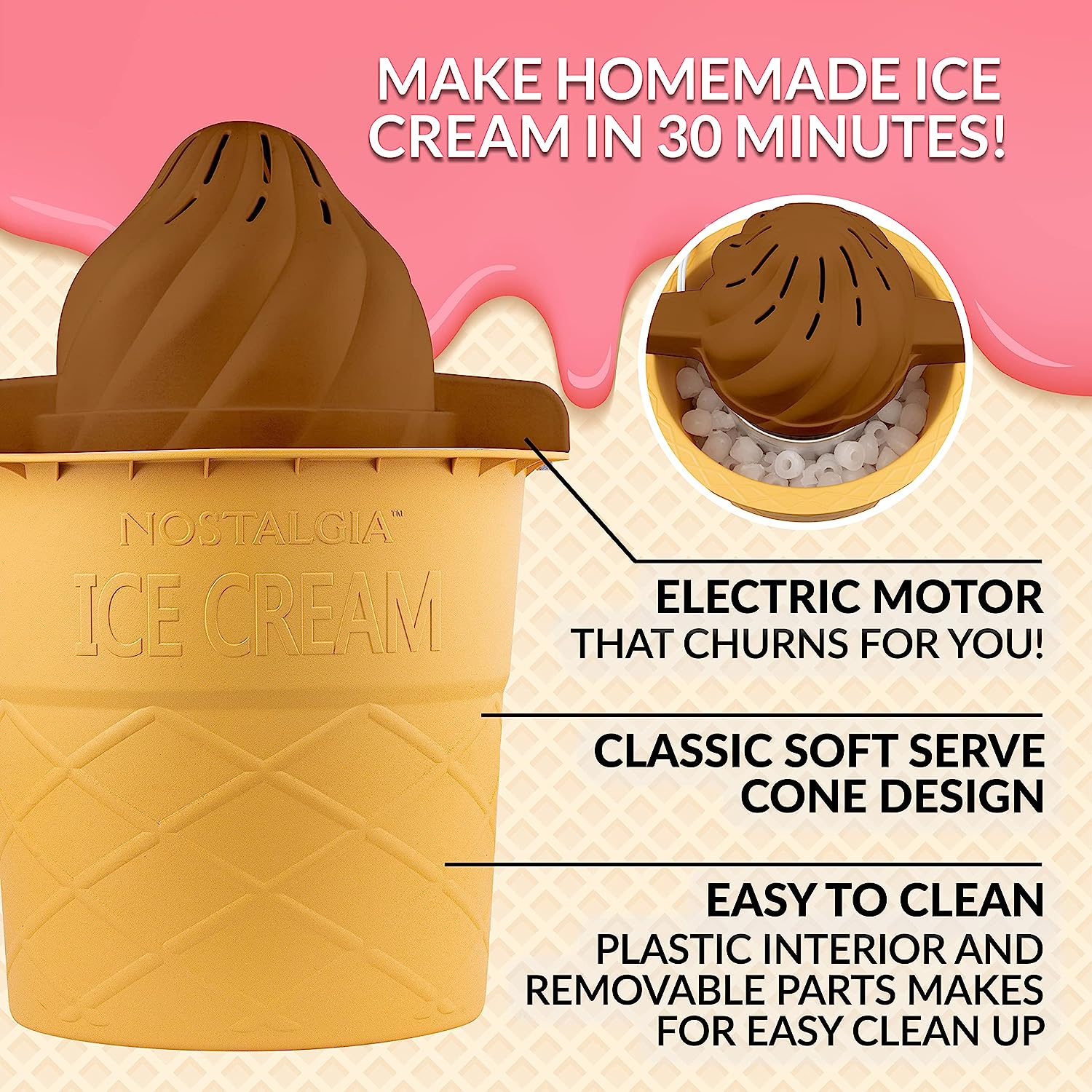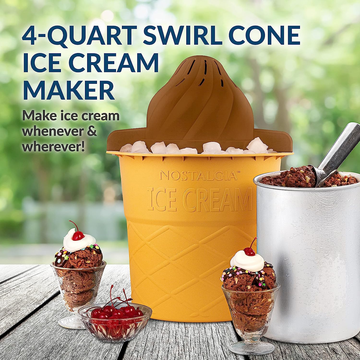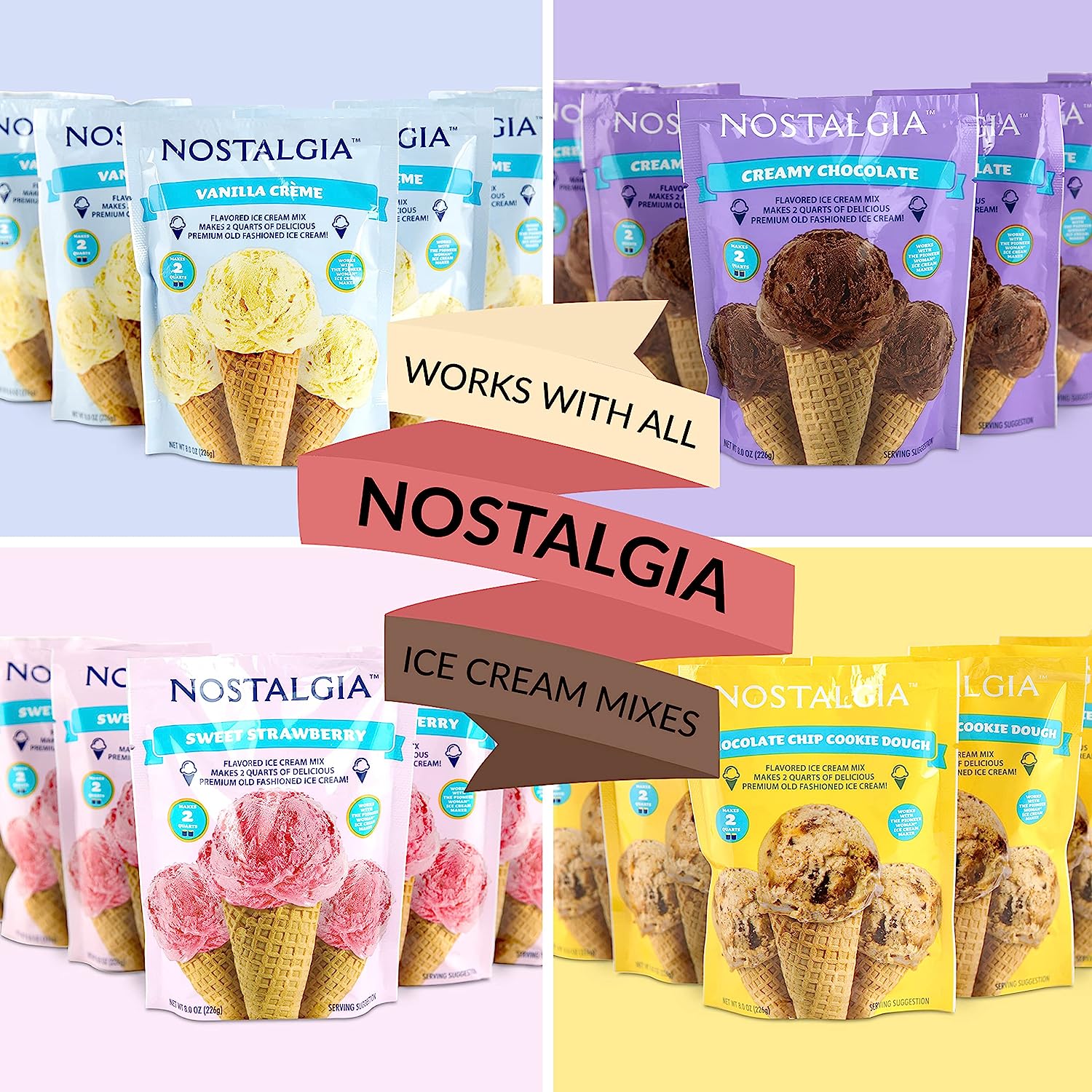 Gather the whole family and enjoy a fun-filled ice cream-making experience with Nostalgia's Electric Ice Cream Maker. You can make ice cream, sorbet, and gelato whenever and wherever you want. Add your ingredients into the aluminum canister, place in the middle of the bucket, layer with ice and salt, and let the electric motor do the rest. Customize each recipe by adding extras, like strawberry preserves, cookie dough, candy, and cookie pieces. When you're all done, use the included lid and cap to store leftover ice cream in the freezer.