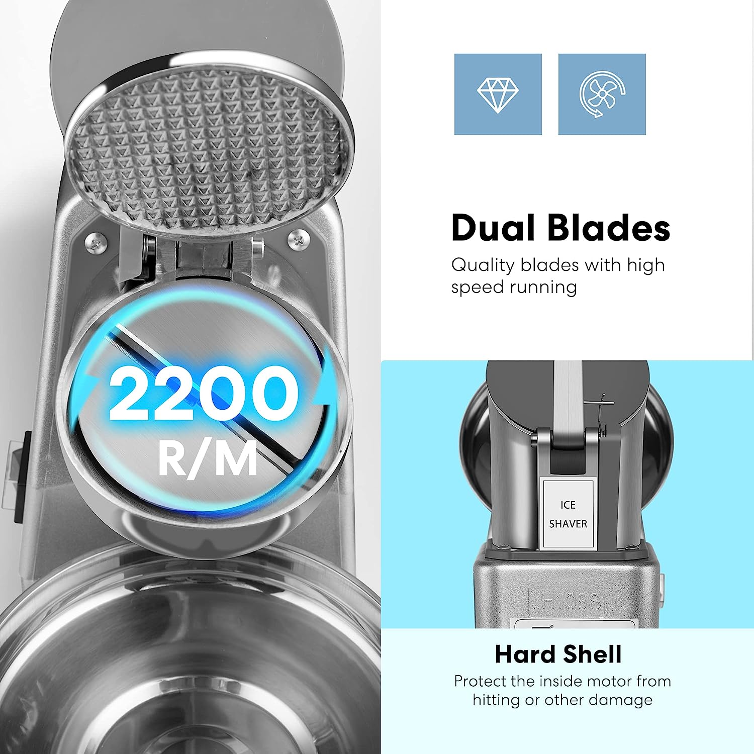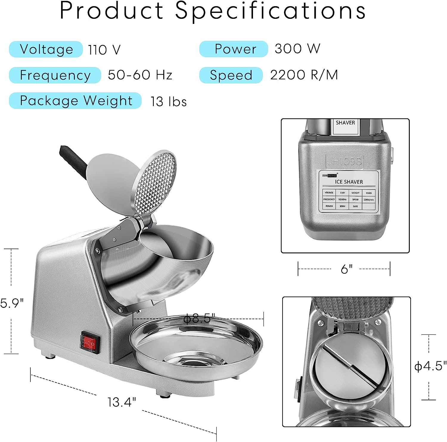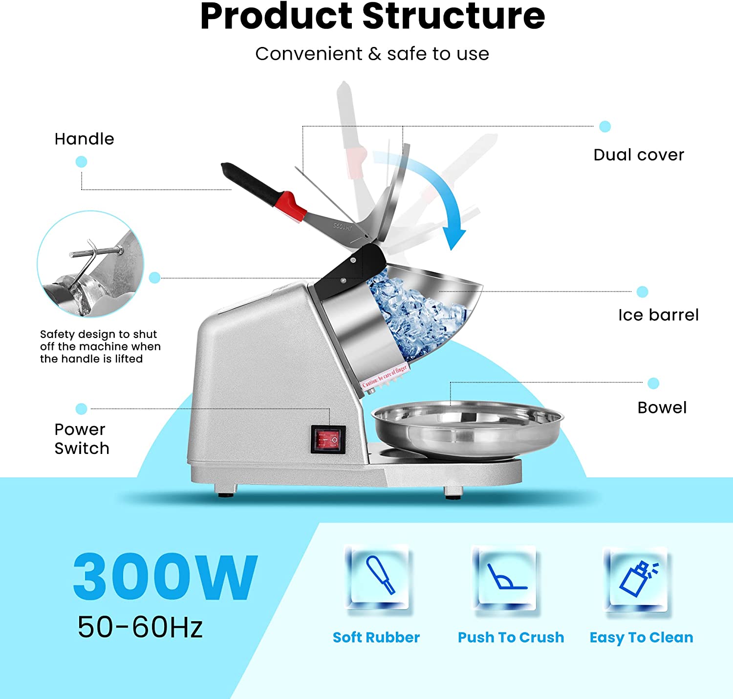• HIGH-QUALITY MATERIALS - Food-grade anti-corrosion stainless-steel blades and ice bowl guarantee longer life than the competitor’s; Rust-proof and hygienic conditions guarantee food safety; Easy-clean mechanics design saves you energy and time, making your life easier; Note: please rotate the ice bowl during use