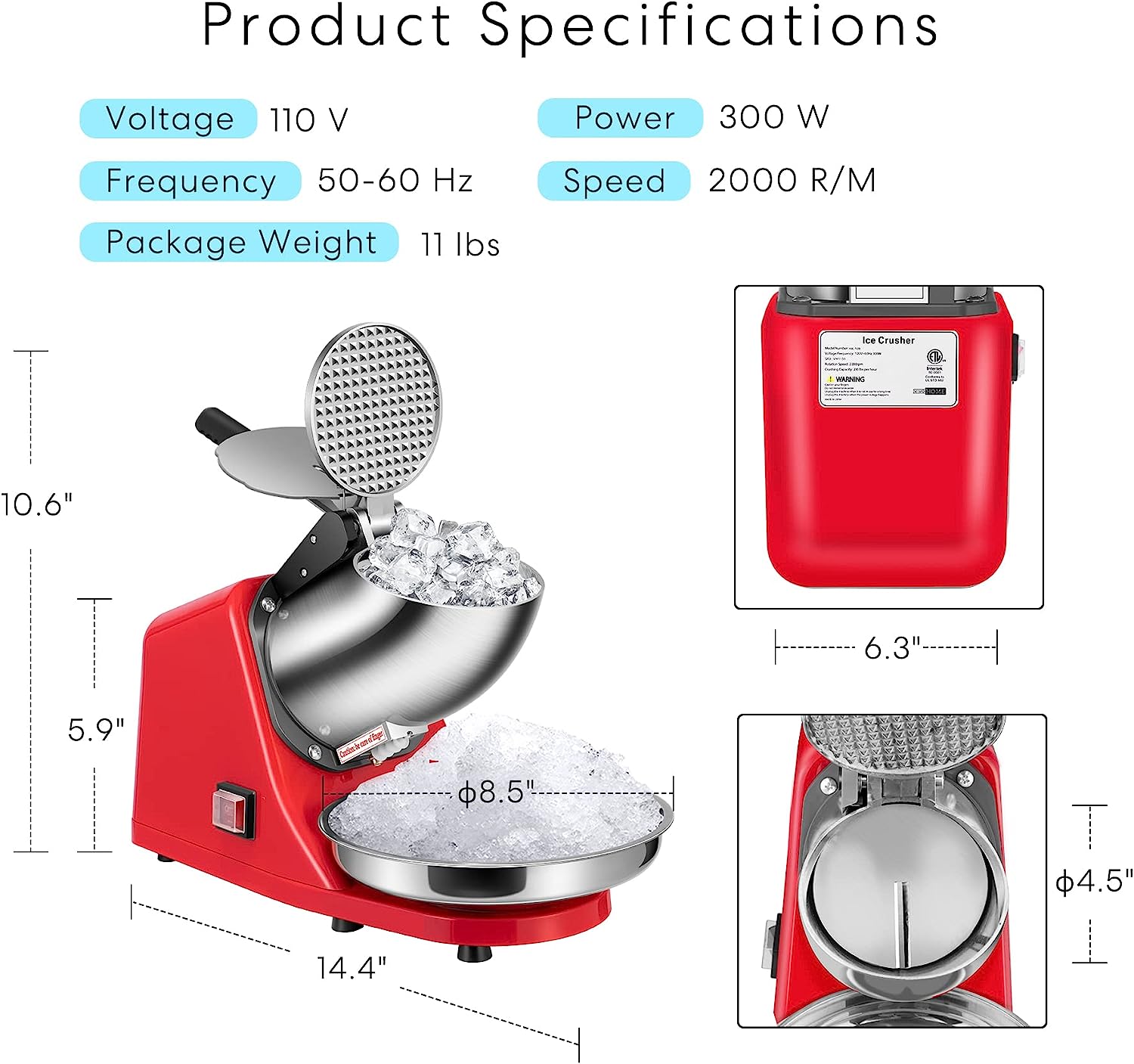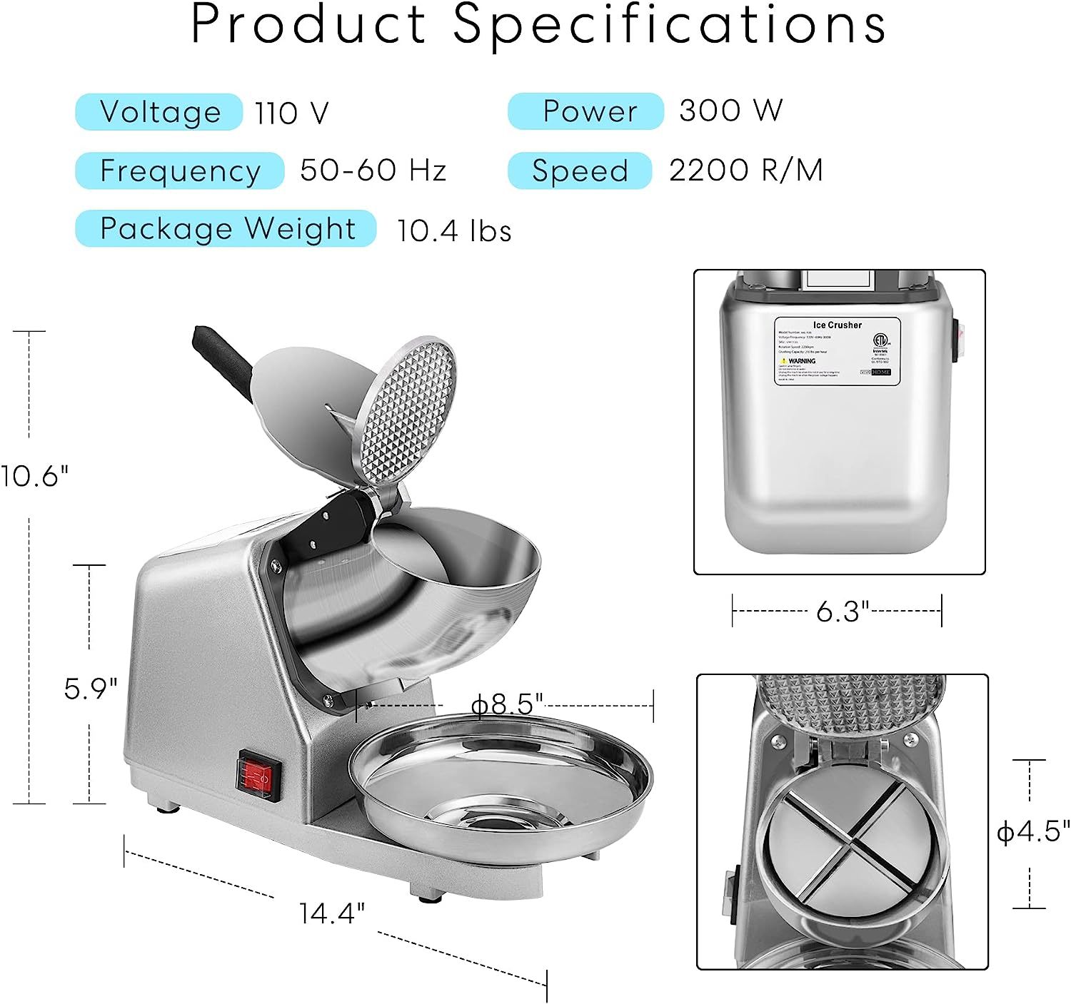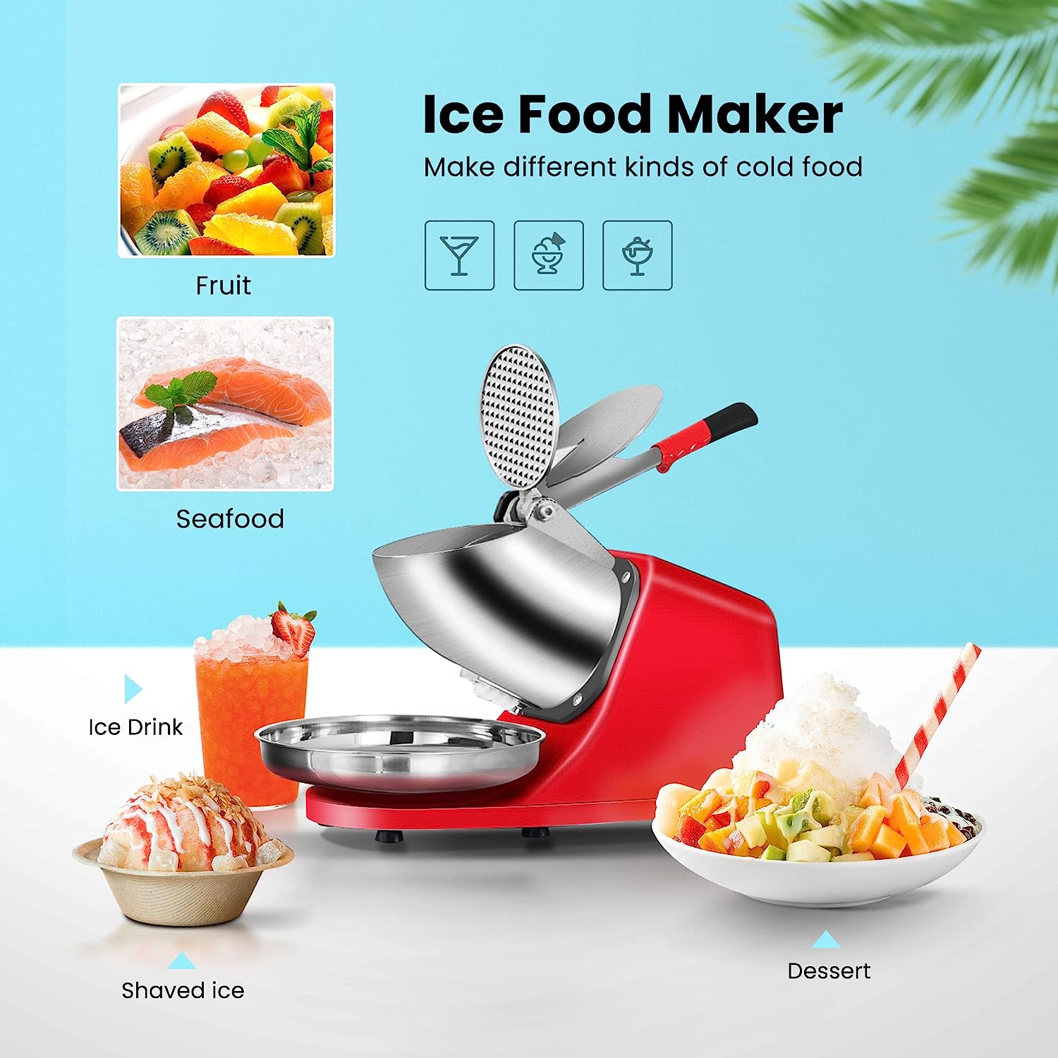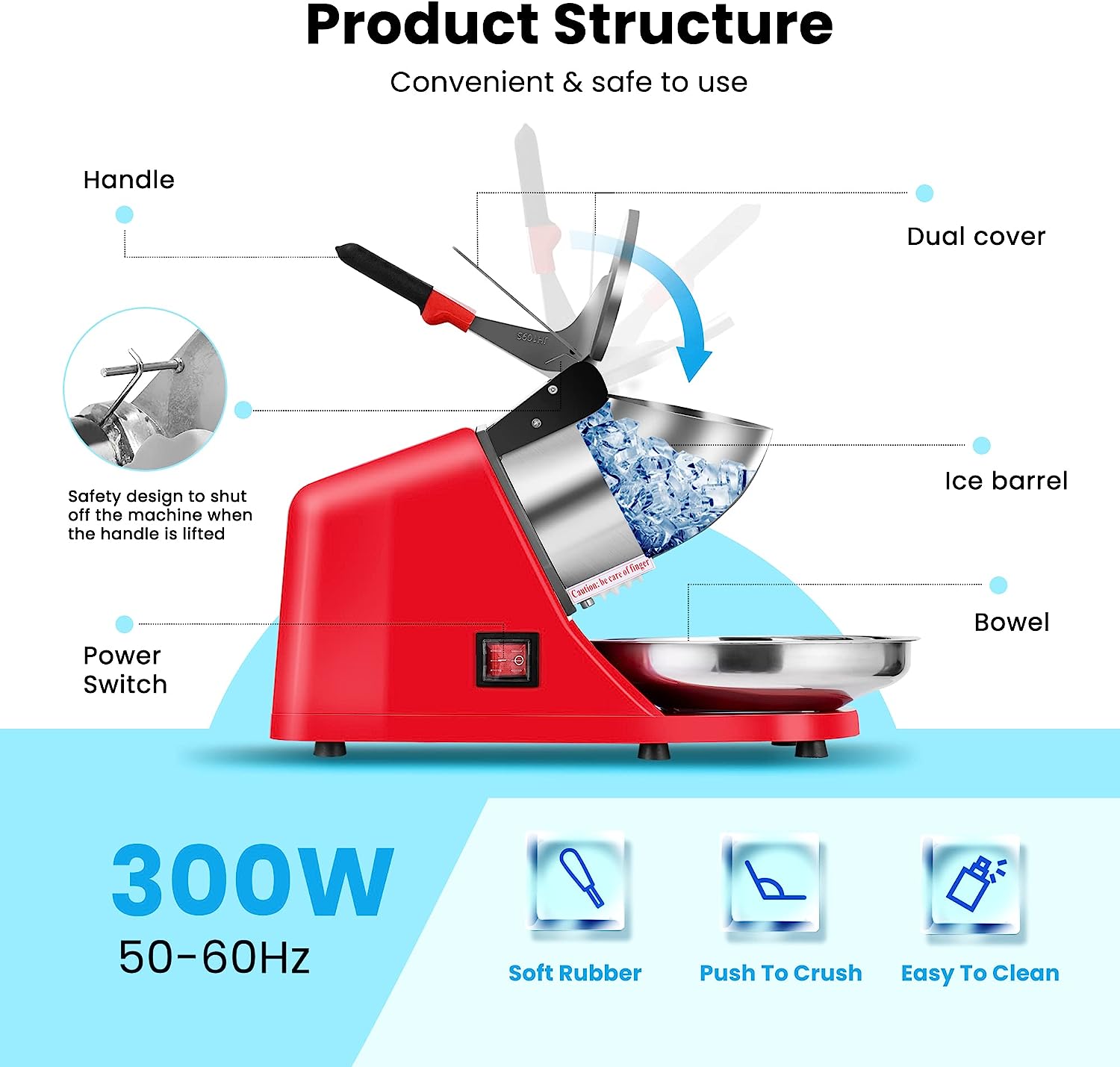 • HIGH-QUALITY MATERIALS - Food-grade anti-corrosion stainless-steel blades and ice bowl guarantee longer life than the competitor’s; Rust-proof and hygienic conditions guarantee food safety; Easy-clean mechanics design saves you energy and time, making your life easier; Note: please rotate the ice bowl during use