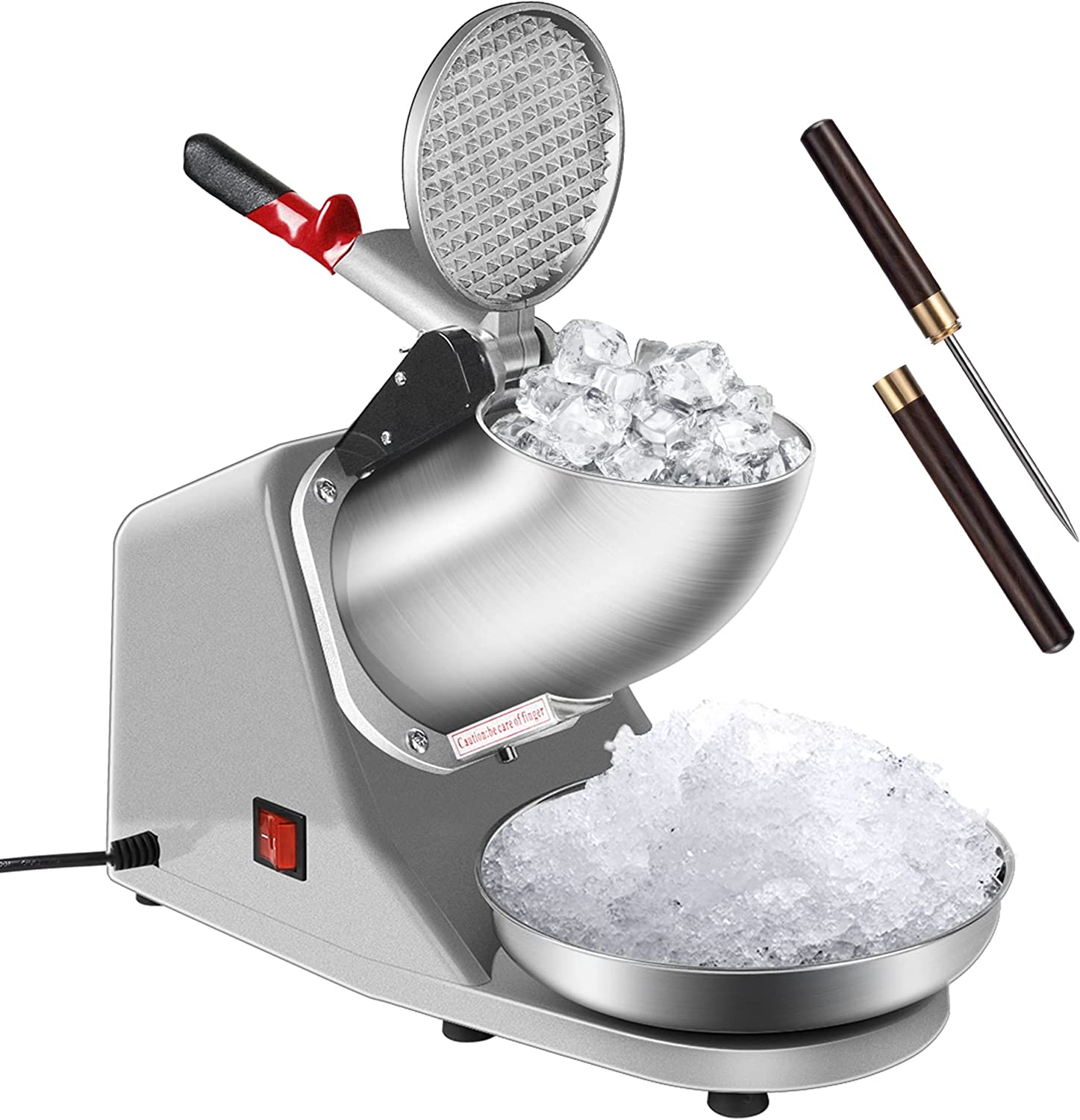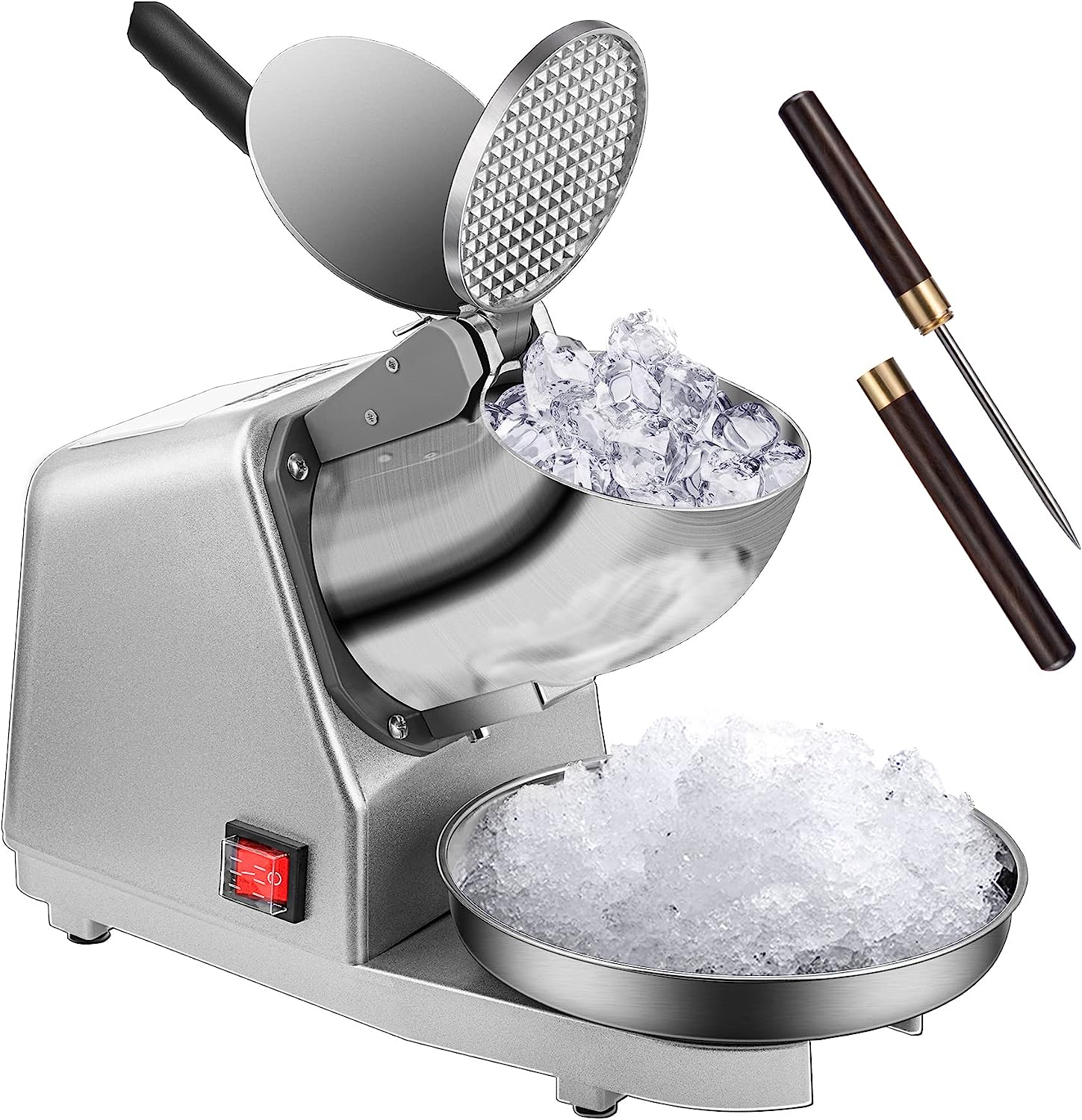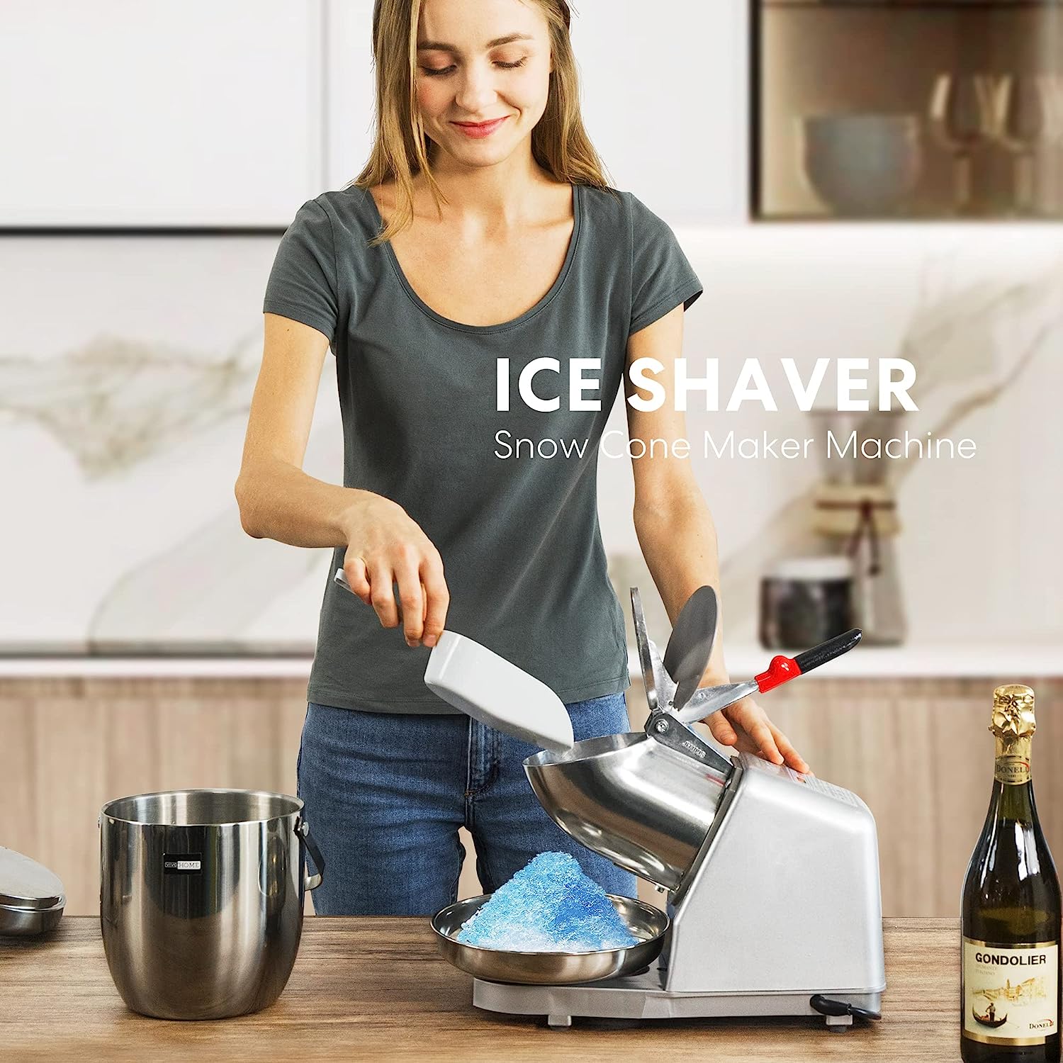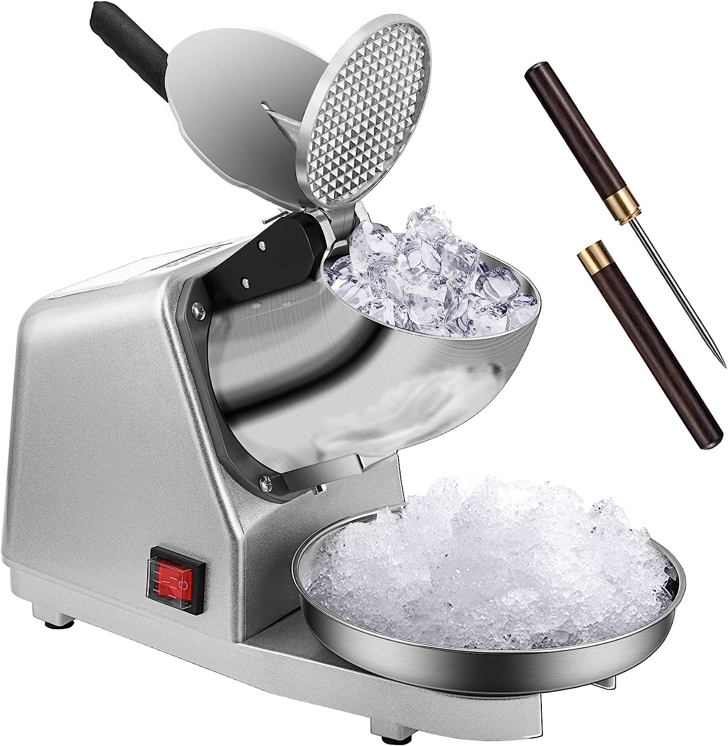 VIVOHOME Electric Dual Blades Ice Crusher Shaver Snow Cone Maker Machine Silver 143lbs/hr with Ice Pick for Home and Commercial Use