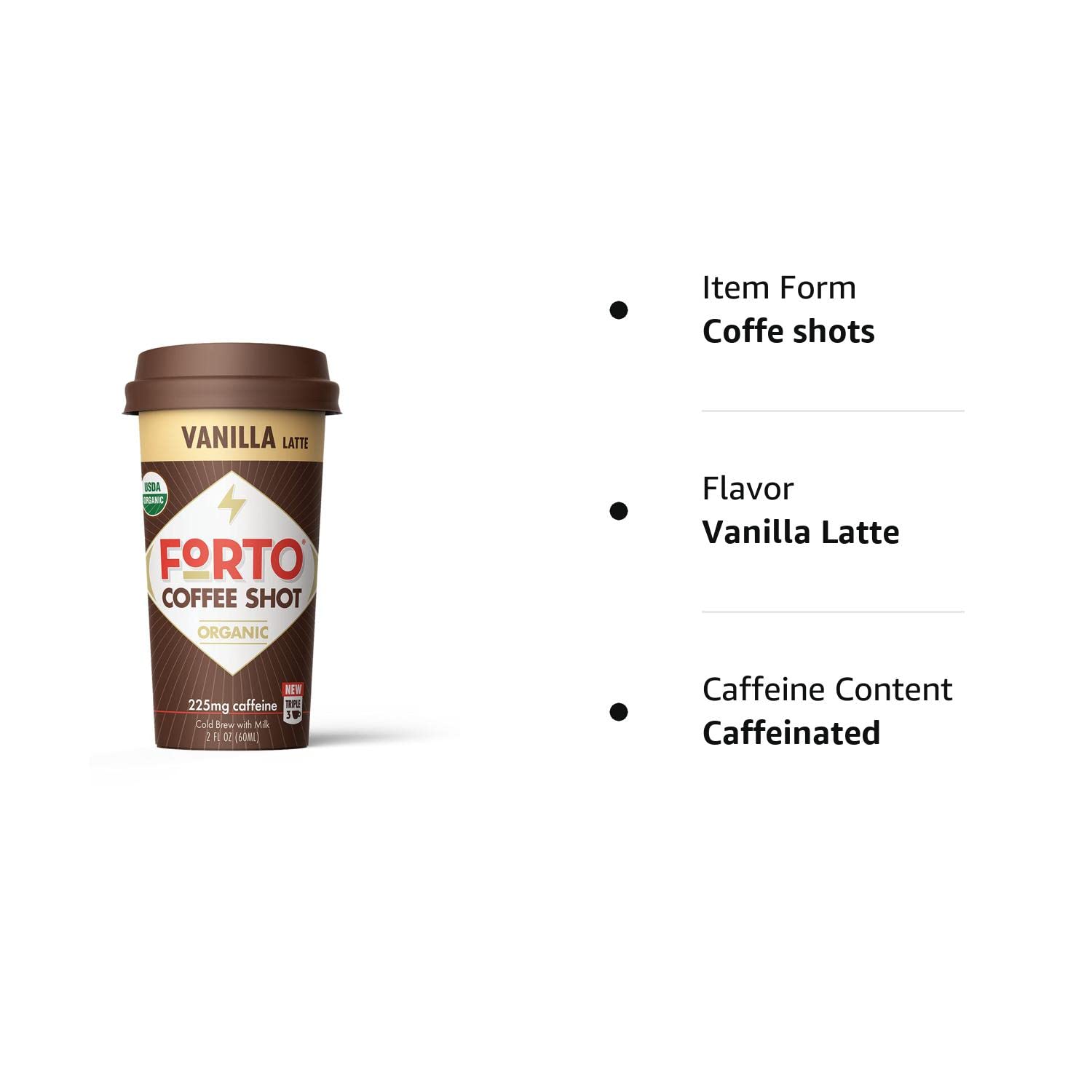 FORTO Coffee Shots - 200mg Caffeine, Vanilla Latte, Ready-to-Drink on the go, Cold Brew Coffee Shot - Fast Coffee Energy Boost, 2 Fl Oz (Pack of 12)