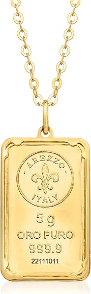 Ross-Simons Italian 24kt Yellow Gold Fleur-De-Lis 5-Gram Ingot Pendant Necklace With 14kt Gold Frame