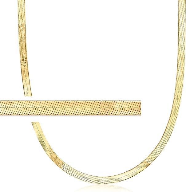 Ross-Simons Italian 4mm 18kt Gold Over Sterling Herringbone Necklace. 16 inches