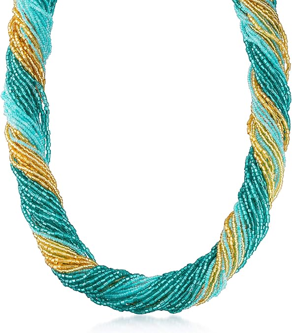 Ross-Simons Italian Aqua and Gold Murano Glass Bead Torsade Necklace With 18kt Gold Over Sterling