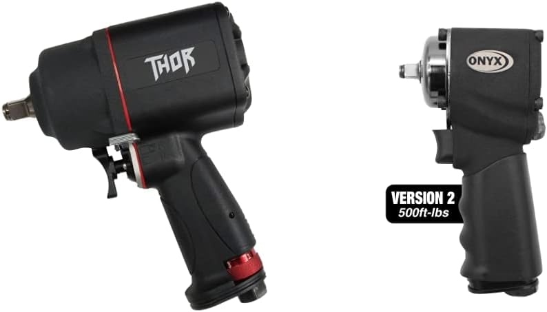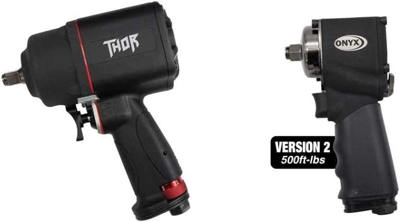 The Astro Tool 1894 ONYX 1/2" "THOR" Impact Wrench is designed with a patented oversized floating air motor and a twin-hammer assembly that puts the weight over your hand for balance, and allows for industry leading power at only 6.7" in length. This impact wrench is rated 940 ft/lb traditiol max torque (compared to 1,600 ft-lbs nut-busting or bolt-breakaway). This tool includes a swinging forward and reverse switch, handle located power adjustment wheel, and a two-stage trigger for a lighter touch without adjusting the tool. Use this impact wrench with 3/8" or 1/4" NPT fittings (adapter for 1/4" included) for a 6.5 CFM continuous use. Max Torque: 940 ft-lbs (1,274 N-m) Free Speed: 7000 rpm Weight: 4.94 lb ( 2.24 Kg ) Length: 6.7"/168 mm Vibration (m/s 2): 5.12 Air Consumption: 6.5 cfm Sound Pressure: 86/97 dBA Air Inlet: 3/8" NPT (1/4" NPT adapter included) Min. Hose Size: 3/8" w/ HI-FLOW fittings