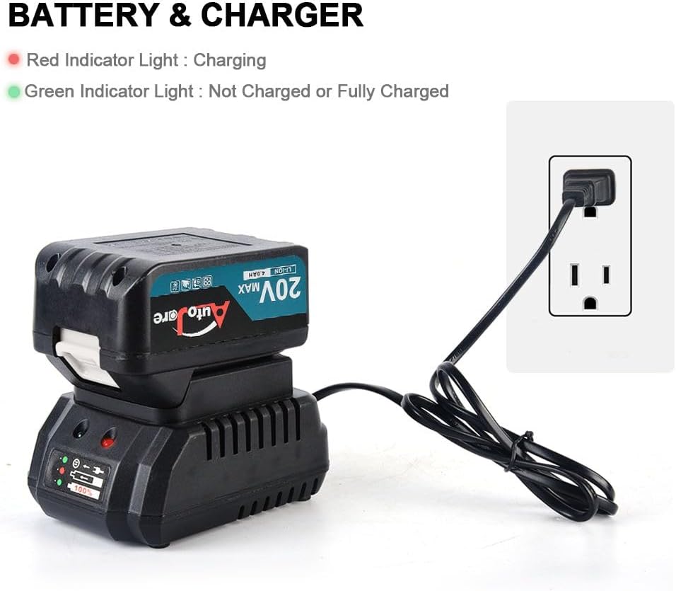 • Powered by the 20V voltage, 4.0AH Lithium-ion battery for strong and steady power and endurable run time, which is supplied with the battery charger, simple and convenient to charge; To Get Extra Batteries, Search B07PJG71HY on Amazon.