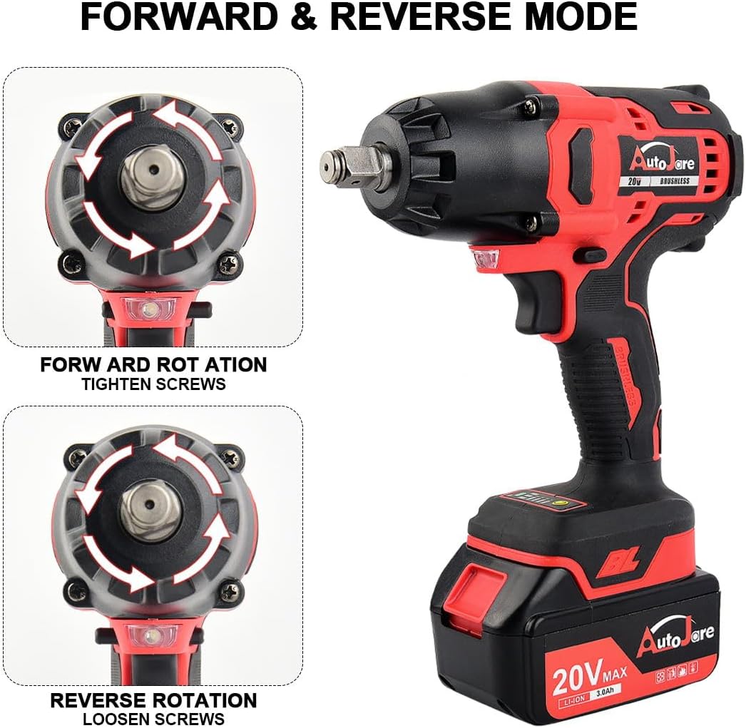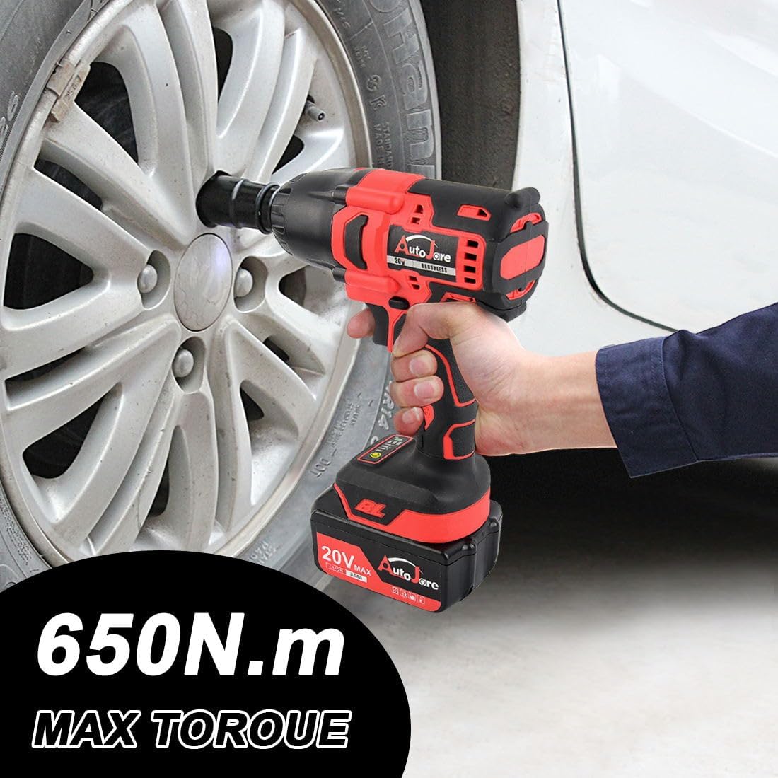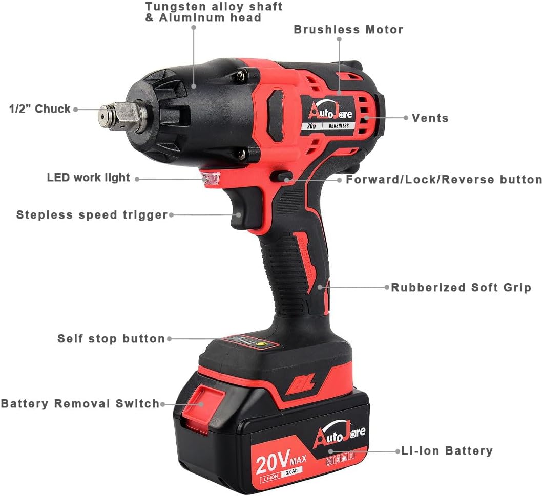 AUTOJARE Cordless Impact Wrench Kit 1/2 inch,Electric Powerful Brushless Motor 20V Max Rechargeable Lithium-Ion Battery with Charger 6pcs Sockets Cordless Wrench Kit