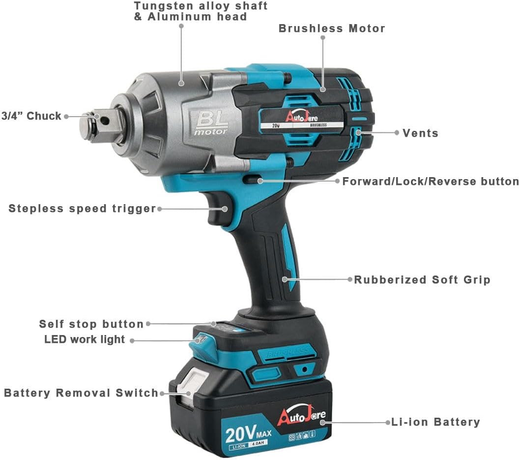 • IMPORTANT: This impact wrench is not suitable for all car!!! Please always consult the customer service before ordering for a car tire. The max torque is 380N.M (280 ft-lb)