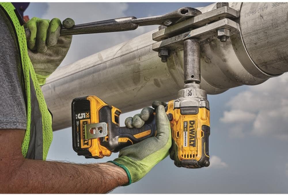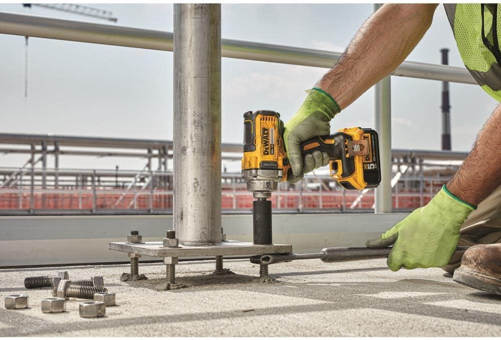 The 20V MAX* XR 1/2-inch Mid-Range Cordless Impact Wrench with Detent Pin Anvil delivers up to 330 ft-lbs max of fastening torque and a lightweight, ergonomic design. This DEWALT impact wrench also features Precision Wrench Control, which helps to prevent overtightening in forward and fastener run-off in reverse. This Mid-Range Cordless Impact Wrench is ideal for grooved couplings, pipe flanges, wheel lugs, concrete anchor setting, and many other applications where a lot of torque is needed in a compact space.