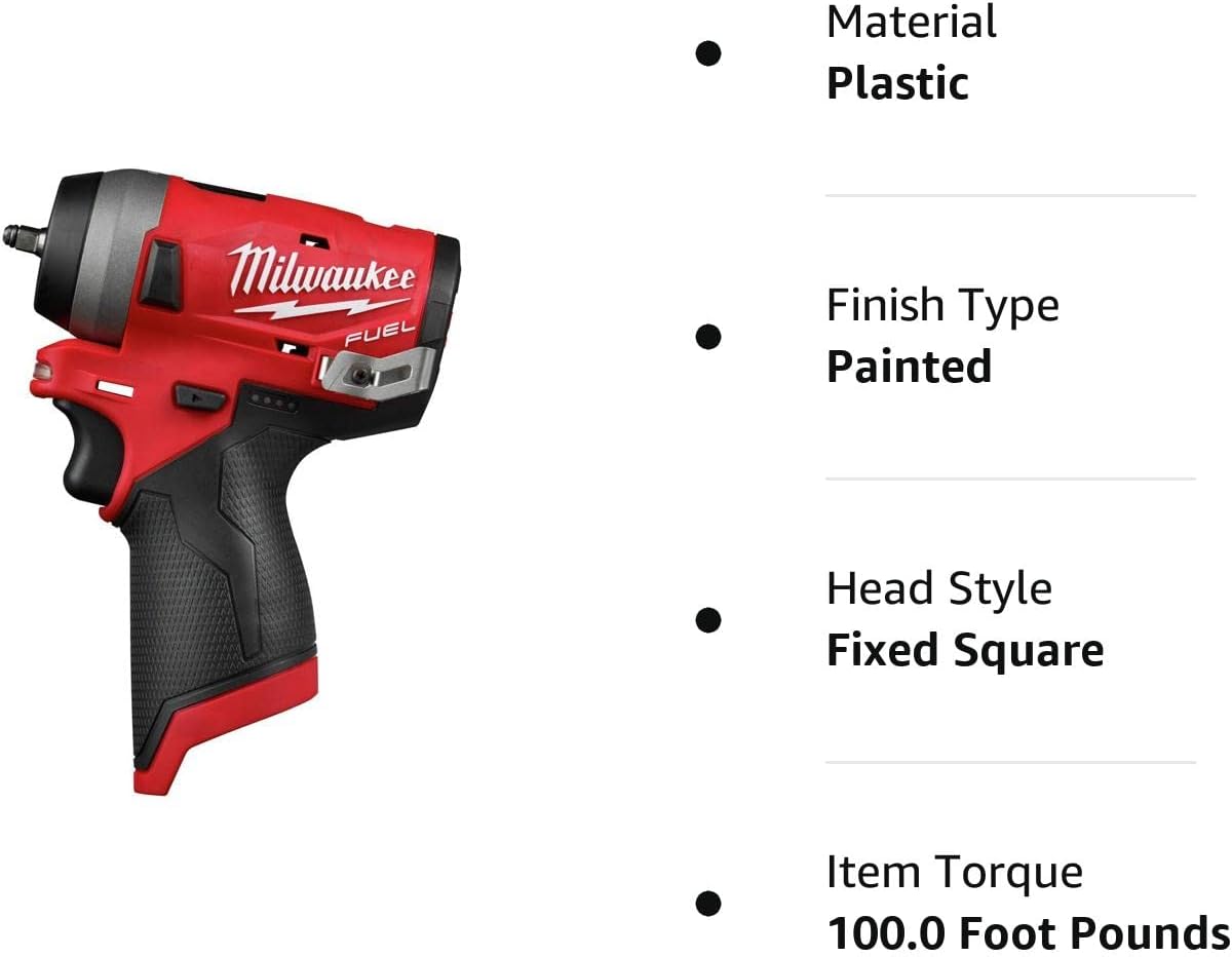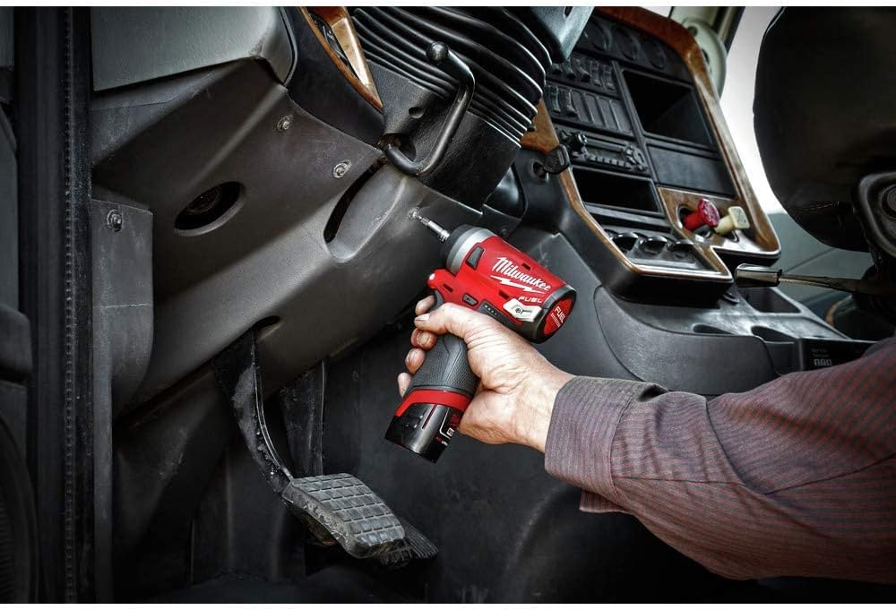Cordless Impact Wrenches, Cordless Impact Wrench, Drive Size 1/4 In., Drive Configuration Straight, Max. Torque 100 ft.-lb., Bare Tool, Voltage 12.0, Series M12 FUEL[TM], Cordless Tool Battery Type Li-Ion, Brushless Motor Yes, Anvil Impact Action Mechanical, Max. Blows per Minute 4000, Max. No Load RPM 2650, Cordless, Handle Type T Handle, Battery Capacity 2.0Ah, 4.0Ah, Tool Length 5-7/64 In., Tool Weight 1.6 lb., Clutch Style Adjustable, Battery Included No