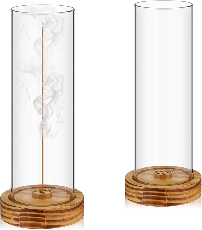 2 Pieces Incense Holder for Sticks removable glass ash catcher Wooden Incense Burner with Glass Ash Catcher Stick Holder for Home Yoga Meditation Gift Incense Sticks Holder Decor