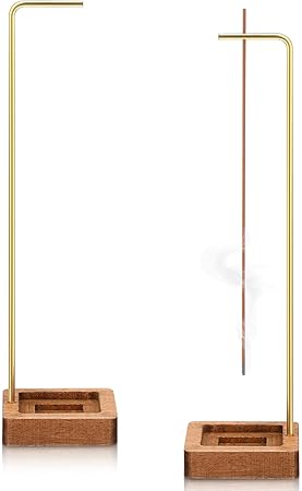 2 Sets Incense Holder for Sticks, Wooden Modern Upside Down Incense Burner Ash Catcher Handmade Round Incense Tray Stand with Brass Incense Stick Silicone Mat for Home Decor Yoga Spa Mediation Zen