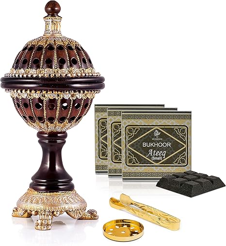 AM Luxury Globe Incense Burner and Bakhoor Ateeq Incense 3 Pack (40g) Bundle
