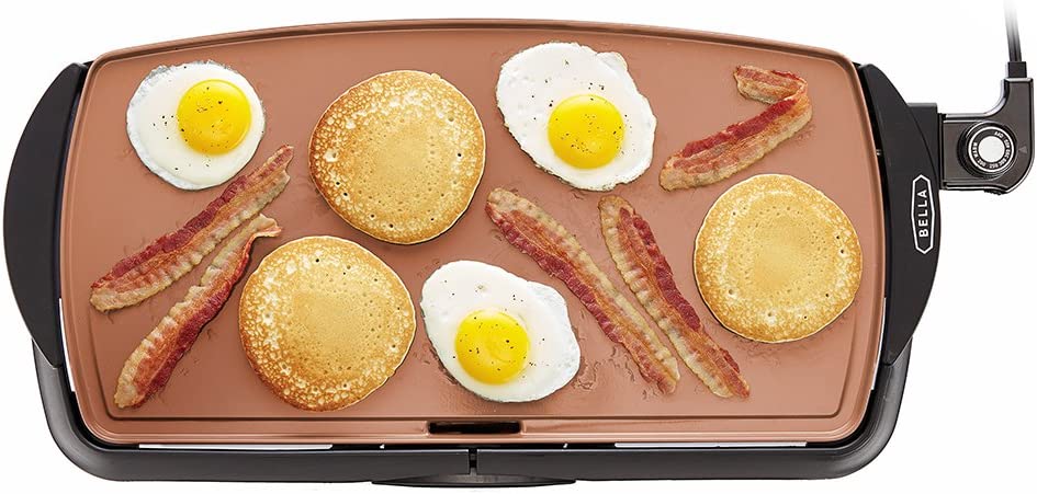 BELLA Electric Ceramic Titanium Griddle, Make 10 Eggs At Once, Healthy-Eco Non-stick Coating, Hassle-Free Clean Up, Large Submersible Cooking Surface, 10.5" x 20", Copper/Black