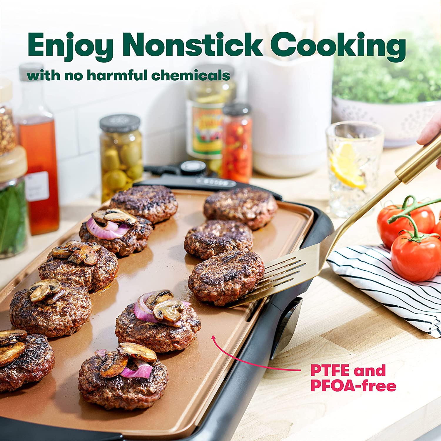 • NONSTICK COOKING: This griddle's Healthy-Eco coating contains no harmful chemicals like lead & cadmium. Its titanium ceramic coating offers superior food release making this a true non-stick surface