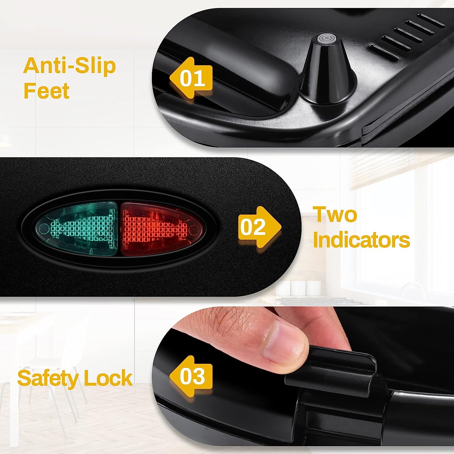 • Non-stick & Easy to Use - Made of food-grade aluminum, the non-stick cooking plate releases food perfectly and is also easy to clean with a damp cloth, and the cold-touch handle adds safety when cooking and removing panini. Features automatic temperature control to prevent overheating, with power and preheat indicators for easy cooking in minutes
