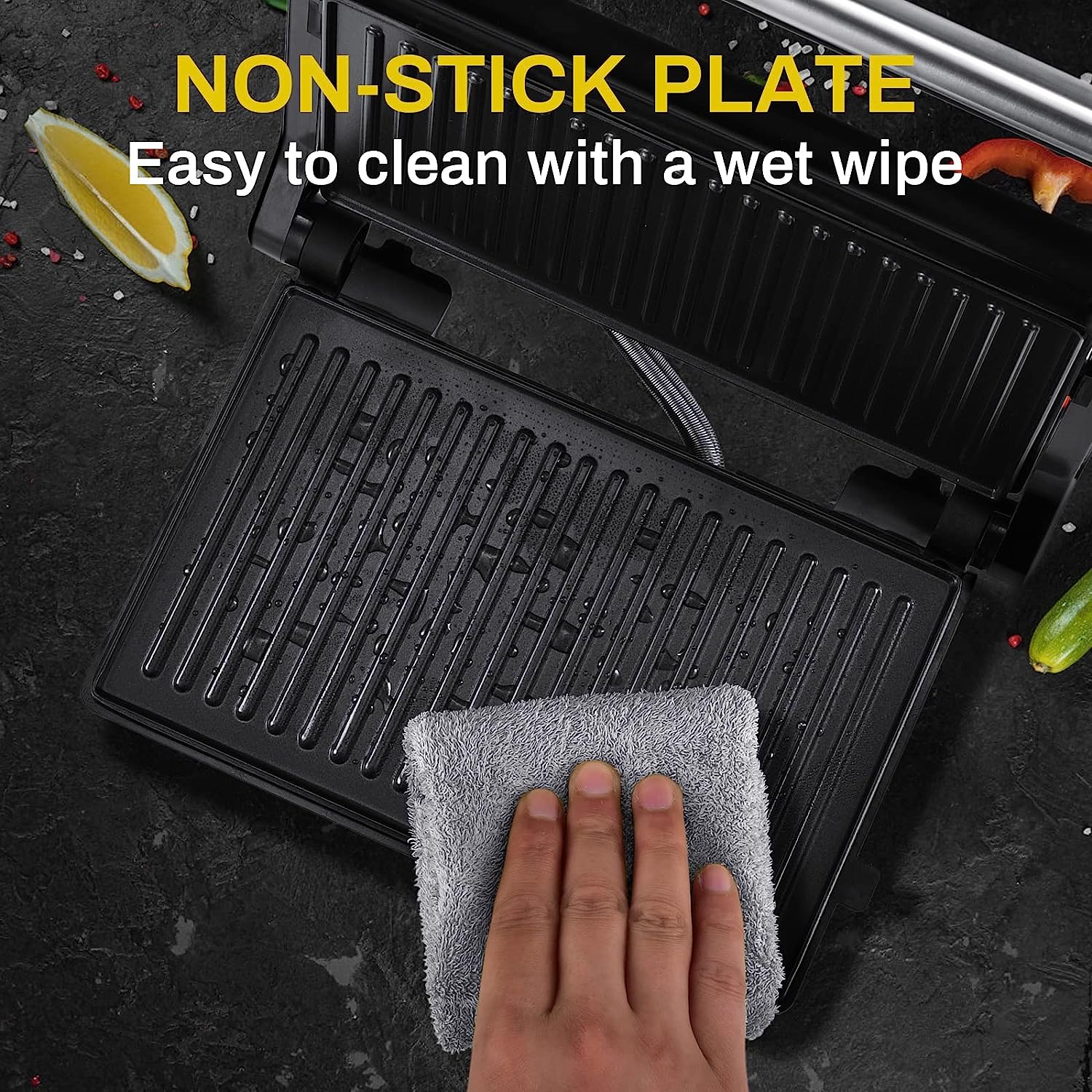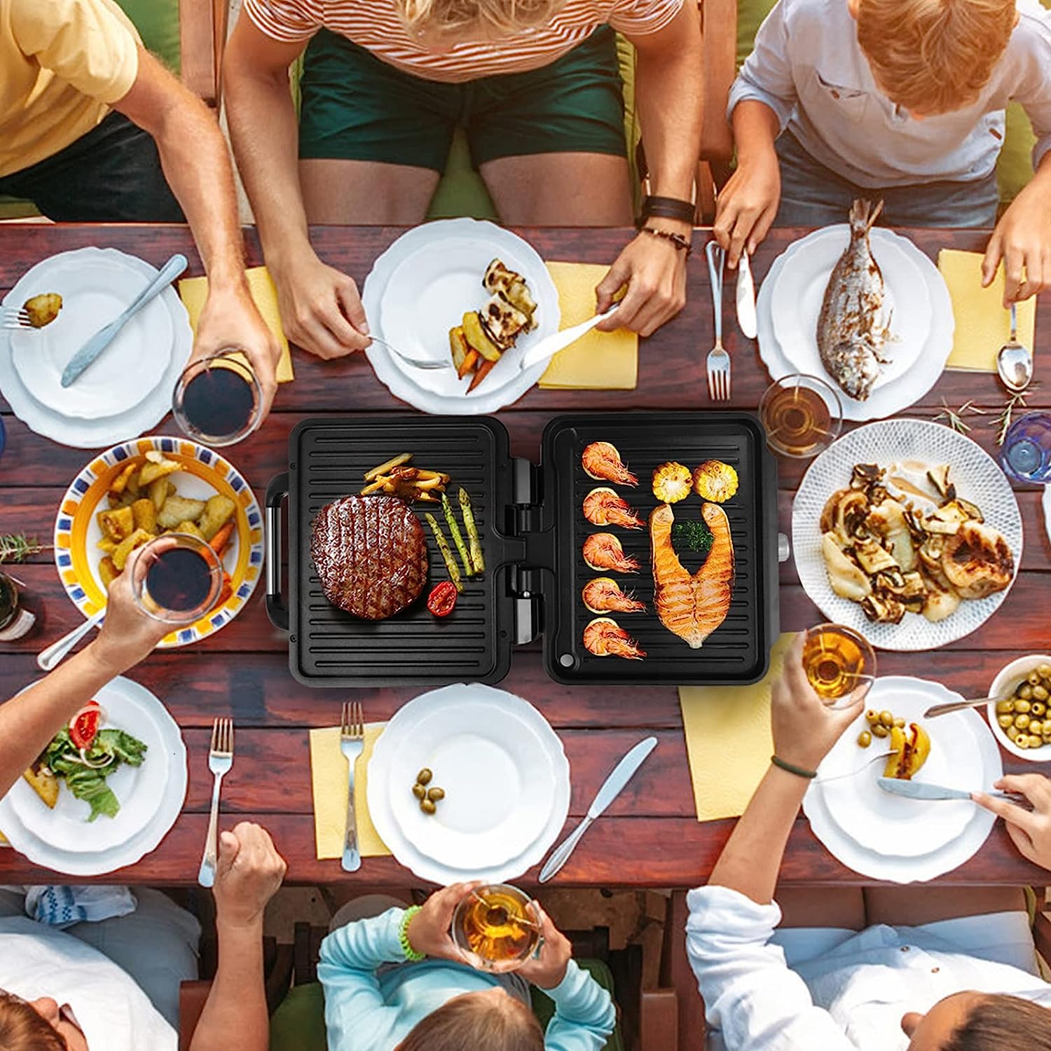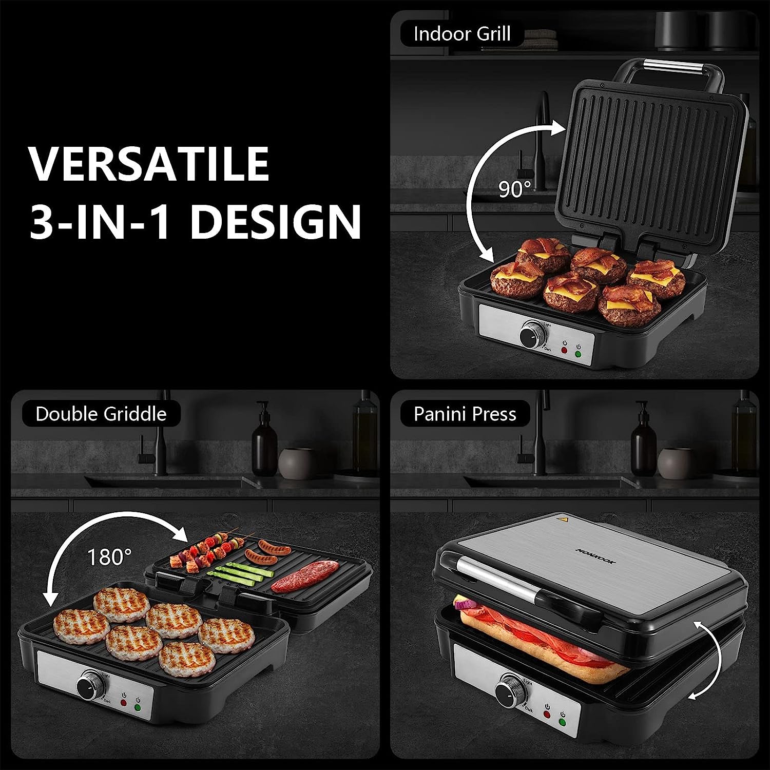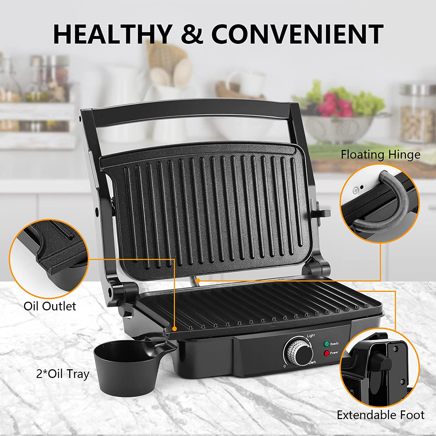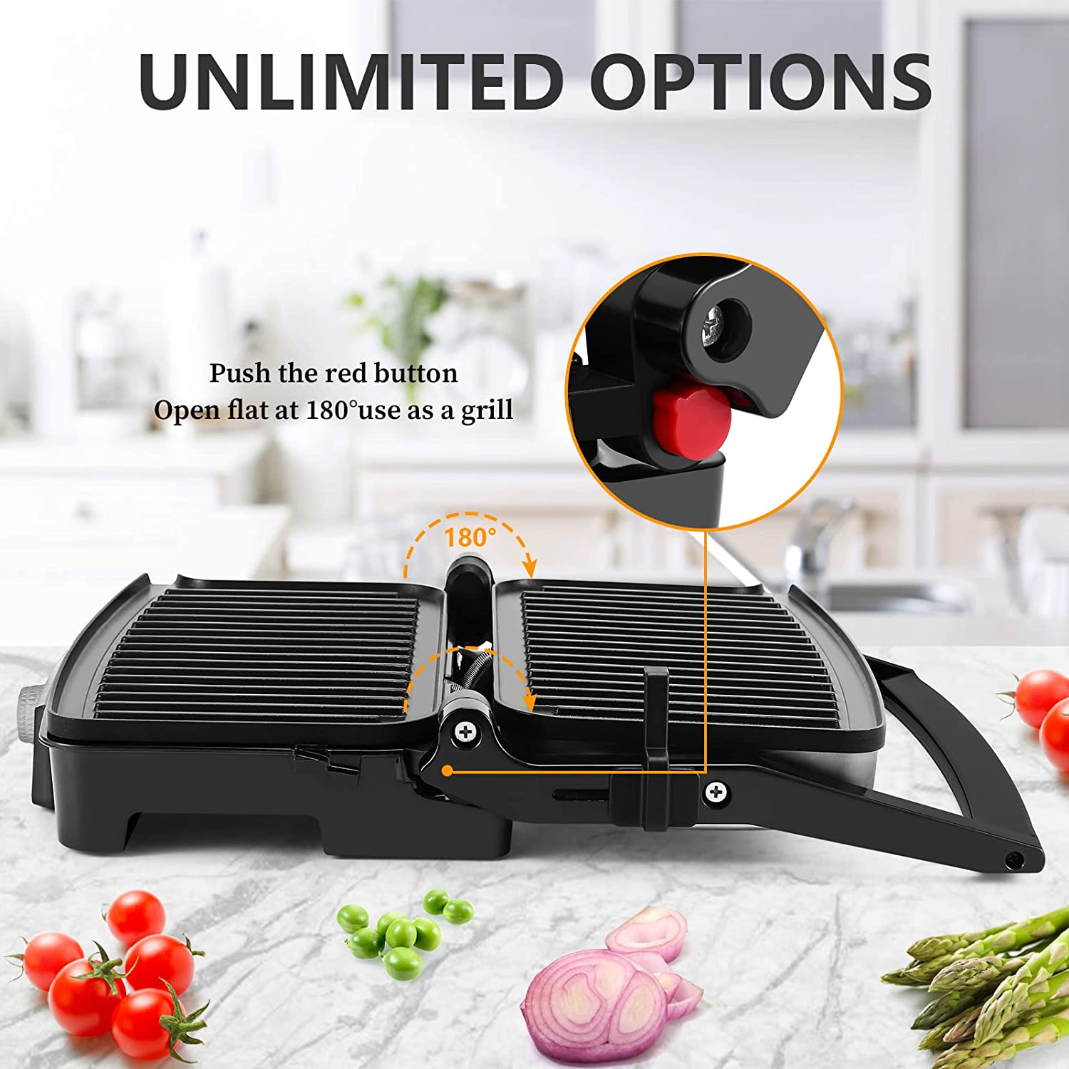 • Versatile Panini Maker - The panini press sandwich maker is perfect for grilling steaks, burgers, chicken and vegetables, making omelets, French toast, panini, sandwiches, and more, and meets any indoor grilling needs
