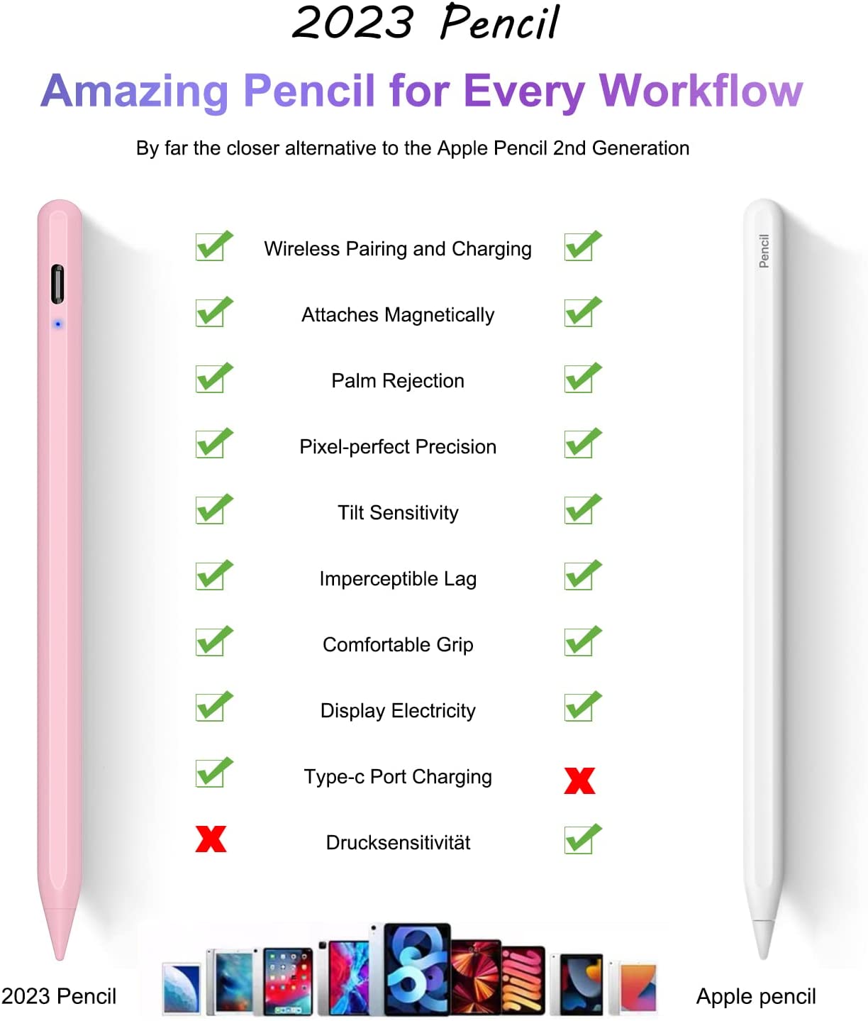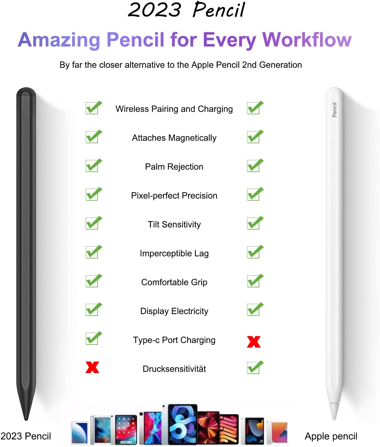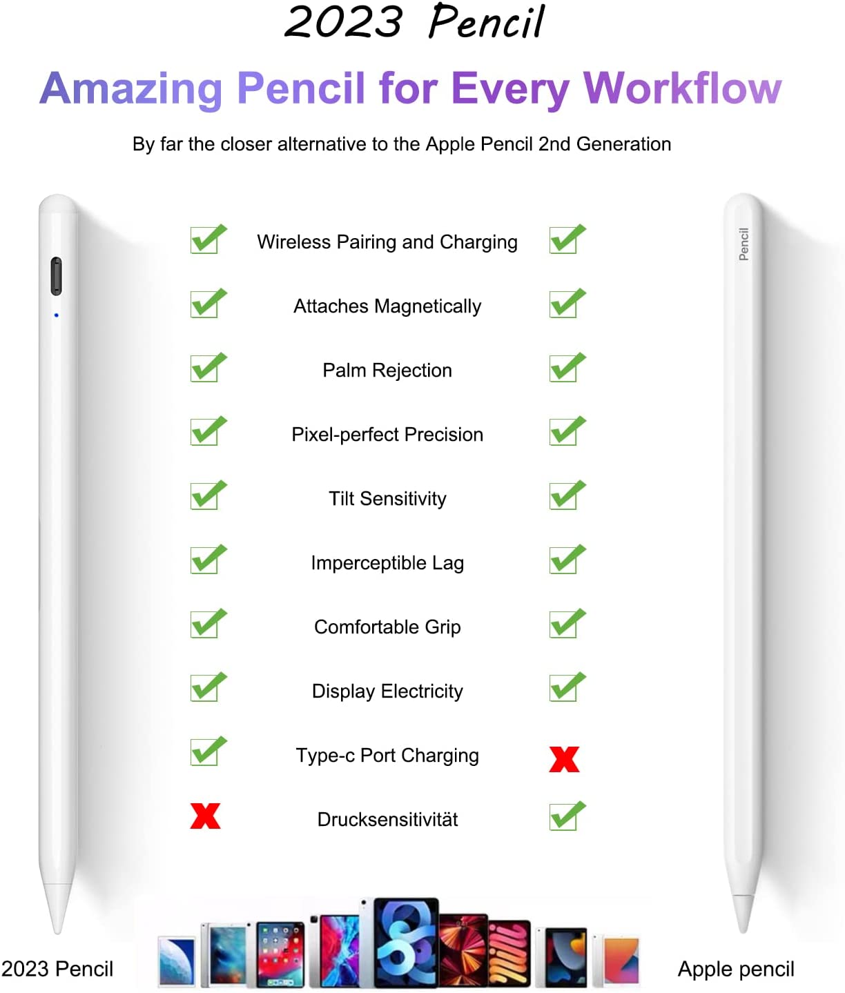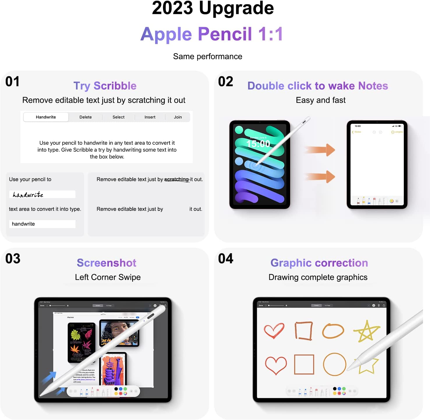 Apple Pencil 2nd Generation, iPad Pencil W1 with Magnetic Wireless Charging Tilt Sensitive Palm Rejection, Apple Pen for iPad 6/7/8/9/10, iPad Mini 5/6, iPad Air 3/4/5, iPad Pro 11"/12.9"