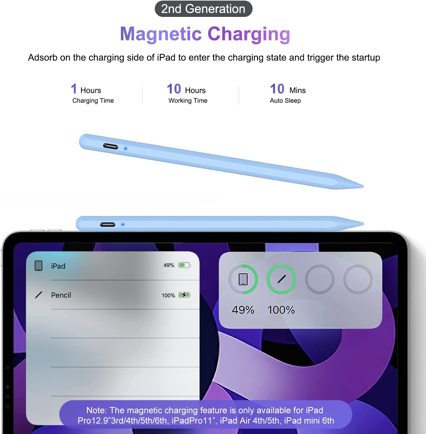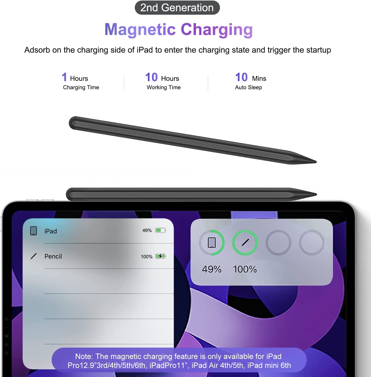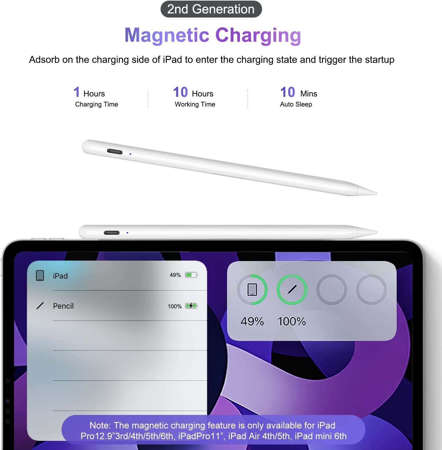 • 【Magnetic Wireless Charging & USB-C Charging 】The apple pencil 2nd generation with Bluetooth and Magnetic Wireless Charging Design, No need to carry a data cable to charge, just connect Bluetooth and snap to the iPad for Wireless Charging. the Type-C data cable can also be used to fully charge the Stylus Pen in 60 minutes and provide 10 hours of working time. You can connect bluetooth to observe the power of the stylus pencil on the iPad.