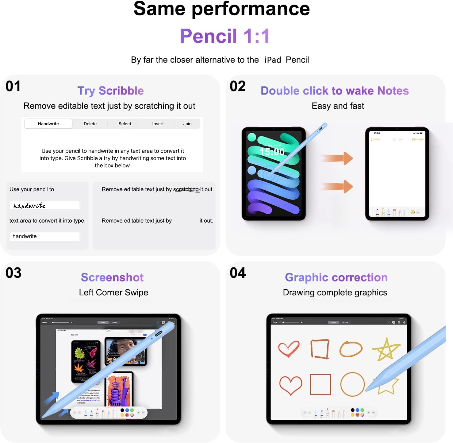• 【Palm Rejection & Tilt Function】The upgraded iPad pen with palm rejection technology allows you to rest your hand comfortably on the iPad screen without glove, more naturally to write and draw just like on paper. Tilt and Thickening function allows you to draw different stroke of thickness and depth by altering the pencil tip inclination, perfect for drawing, writing or graffiting on iPad.