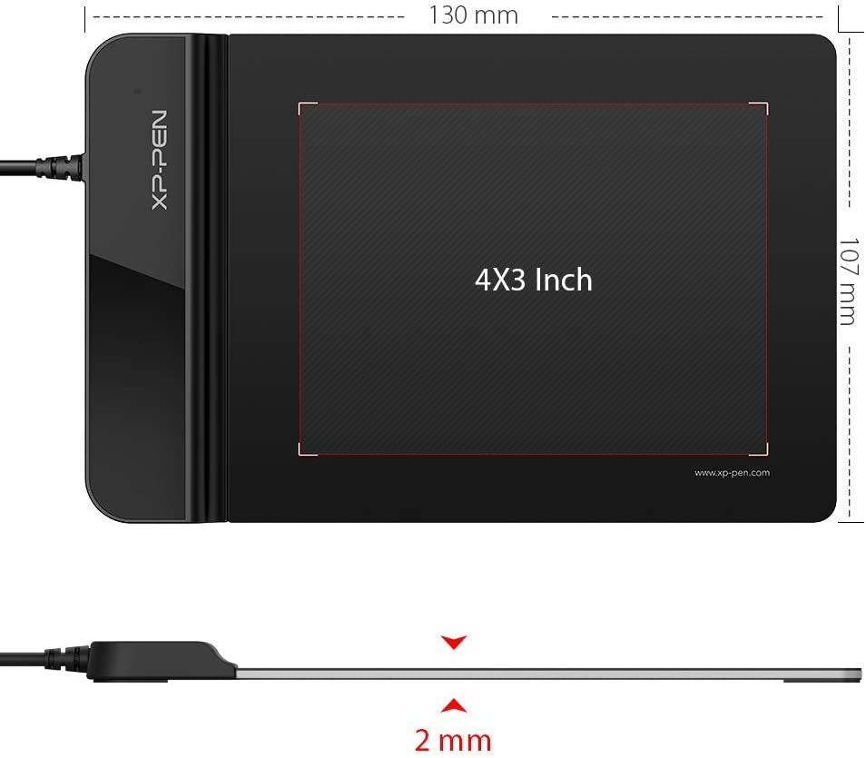 • 【Ultra thin tablet】 Active Area 4 x 3 inches. Fully utilizing our 8192 levels of pen pressure sensitivity―Providing you with groundbreaking control and fluidity to expand your creative output.