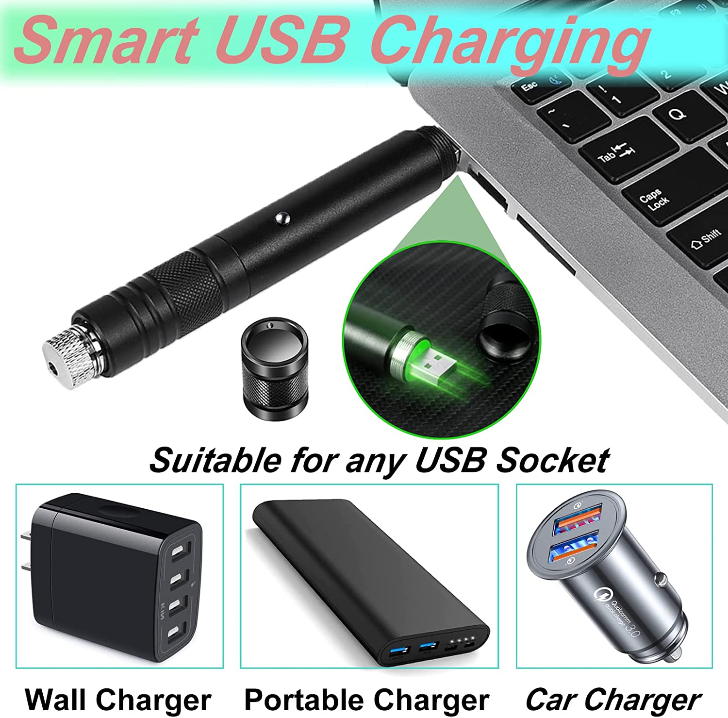 ❷: This rechargeable laser pointer can be charged through the rear USB port, No need to replace the battery.