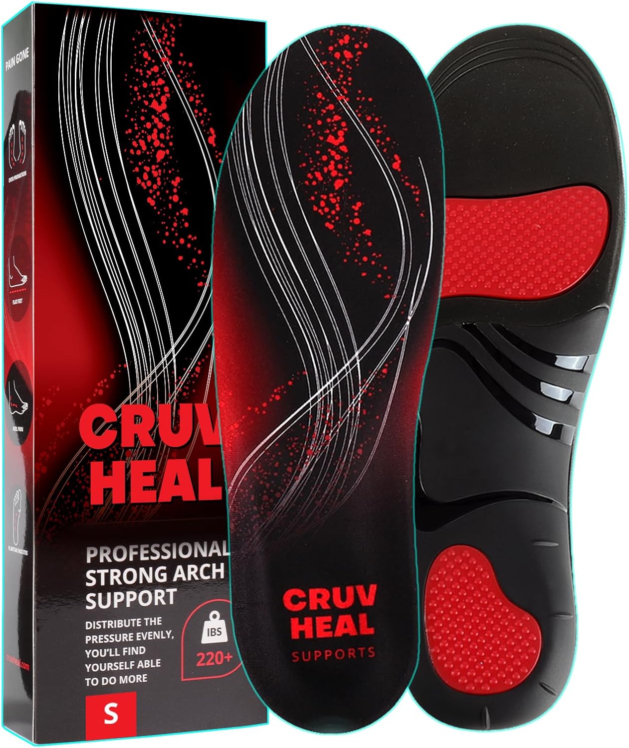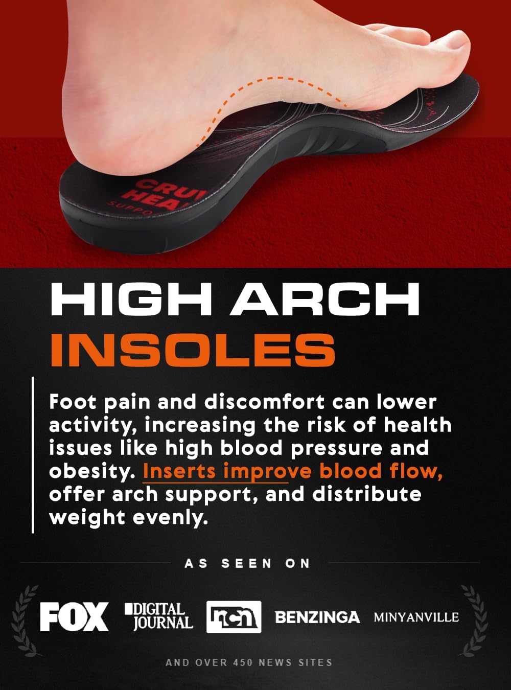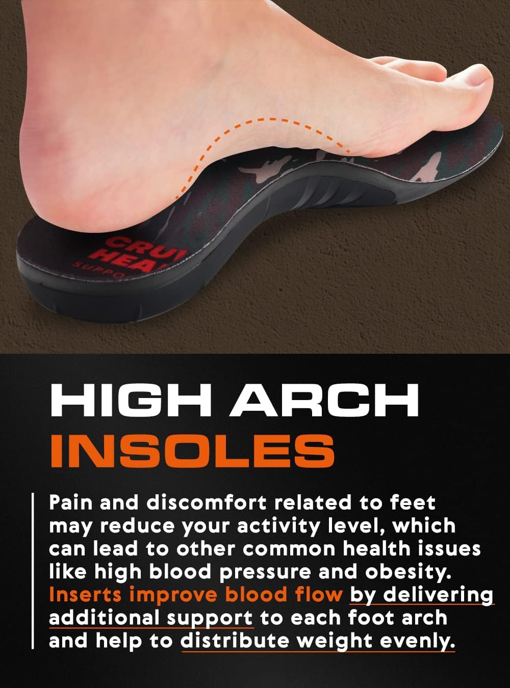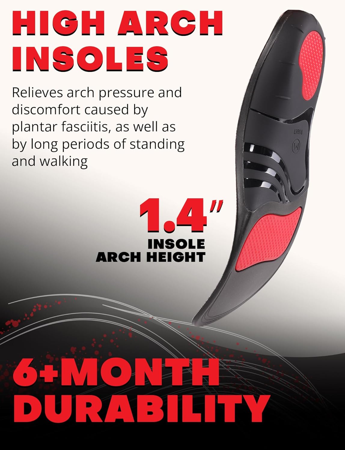 • 🔝TOP HIGH ARCH SUPPORT SHOE INSOLES: Powerful shoe inserts with 1.4 inches arch for men and women over 220 pounds help distribute body weight, and reduce foot impact