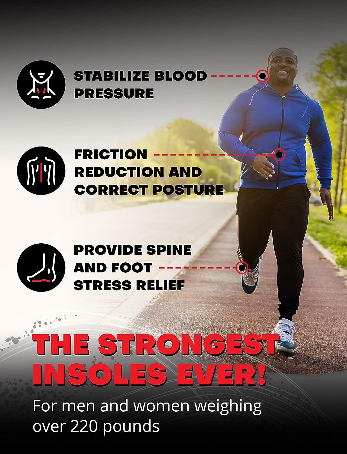 • 💪🏻WITHSTAND 220 LBS+: heavy-duty insoles provide cushioning for the heel and forefoot; special gel pads provide absorb shock and keep the foot secure. The high arch and built-in support ensure the correct position of the foot, stabilize the entire body and distribute the weight correctly