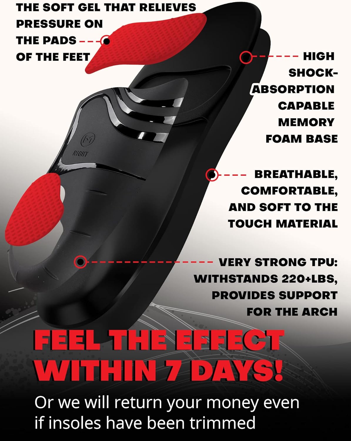 • 🔥100% RISK-FREE PURCHASE & PROMISE SERVICE: We offer a 1-year warranty and a 90-day refund or replacement policy, and accept returns of trimmed insoles. Contact us if you have received a damaged item for a reasonable and acceptable solution.