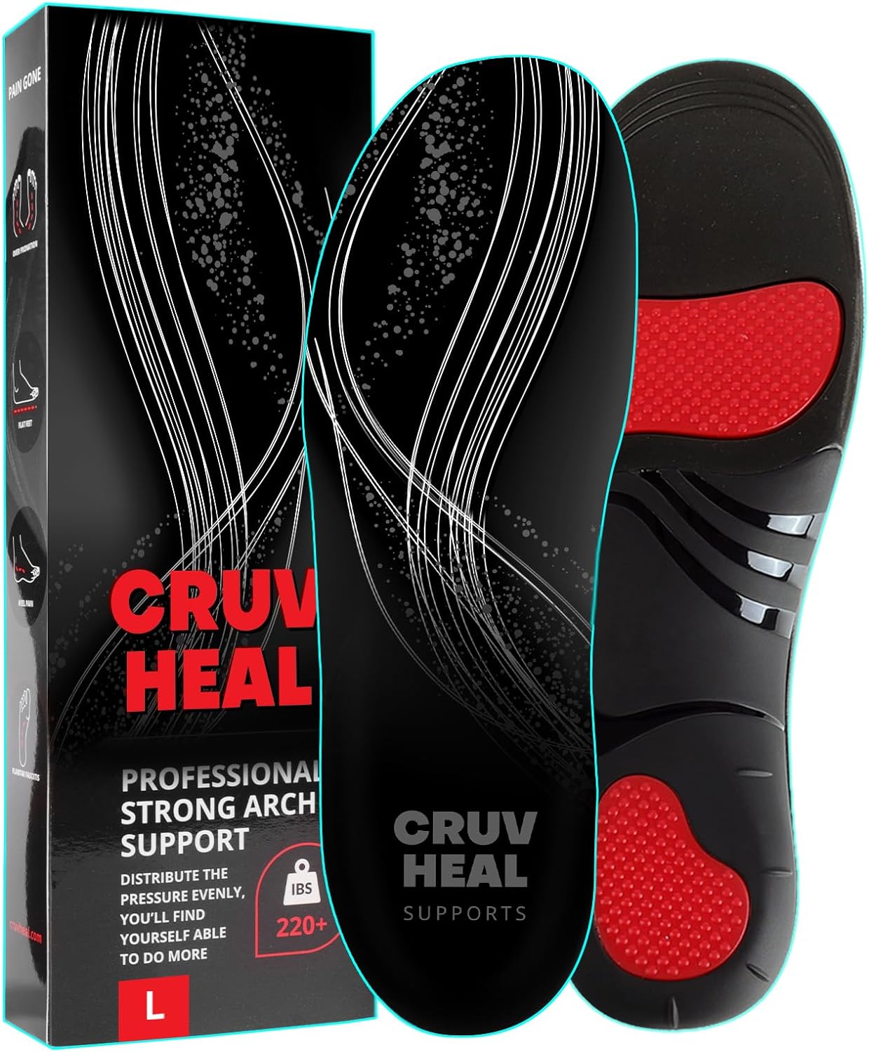 (220+lbs) Plantar Fasciitis High Arch Support Insoles Inserts Men Women - Orthotic Insoles High Arch for Arch Pain - Boot Work Shoe Insole - Heavy Duty Support Pain Relief (L, Black)