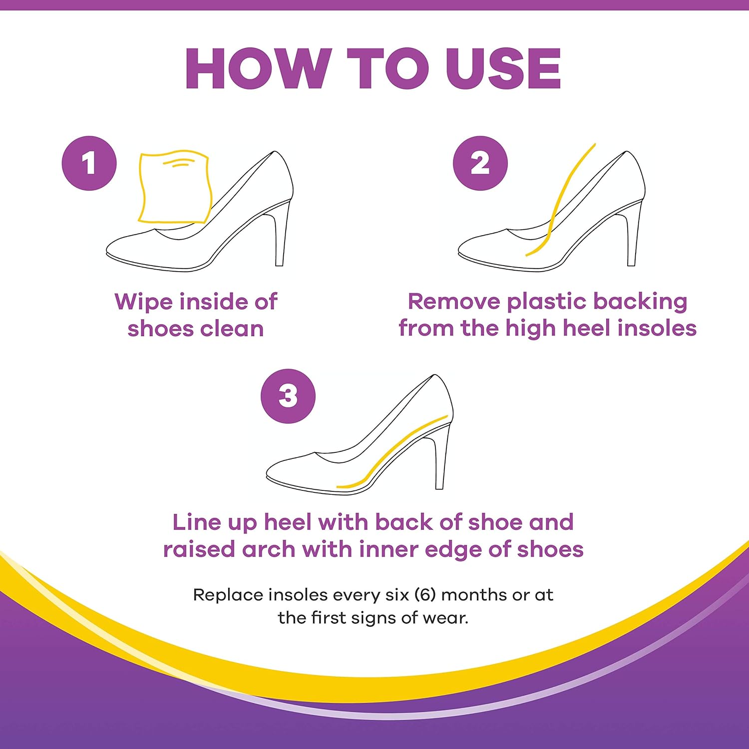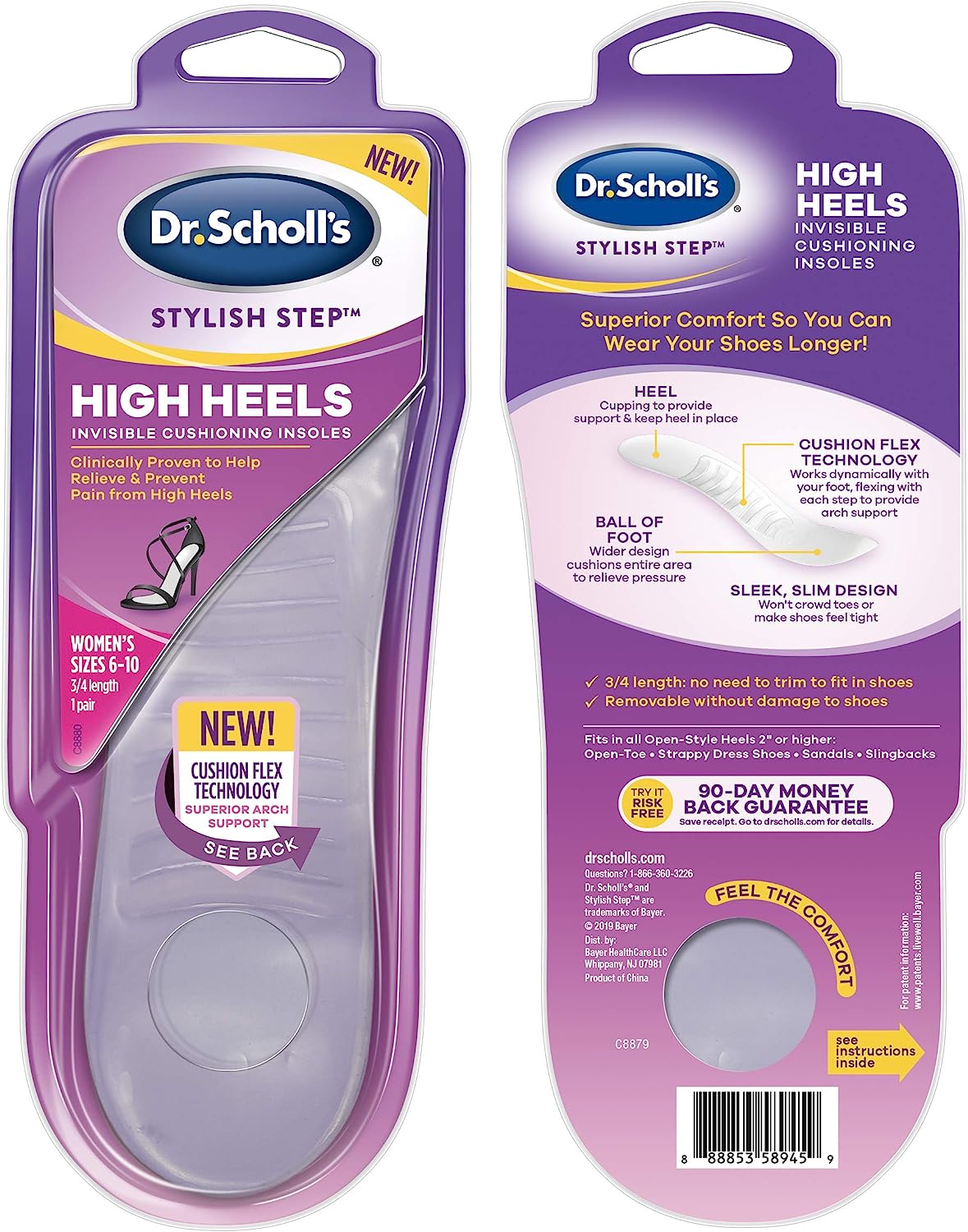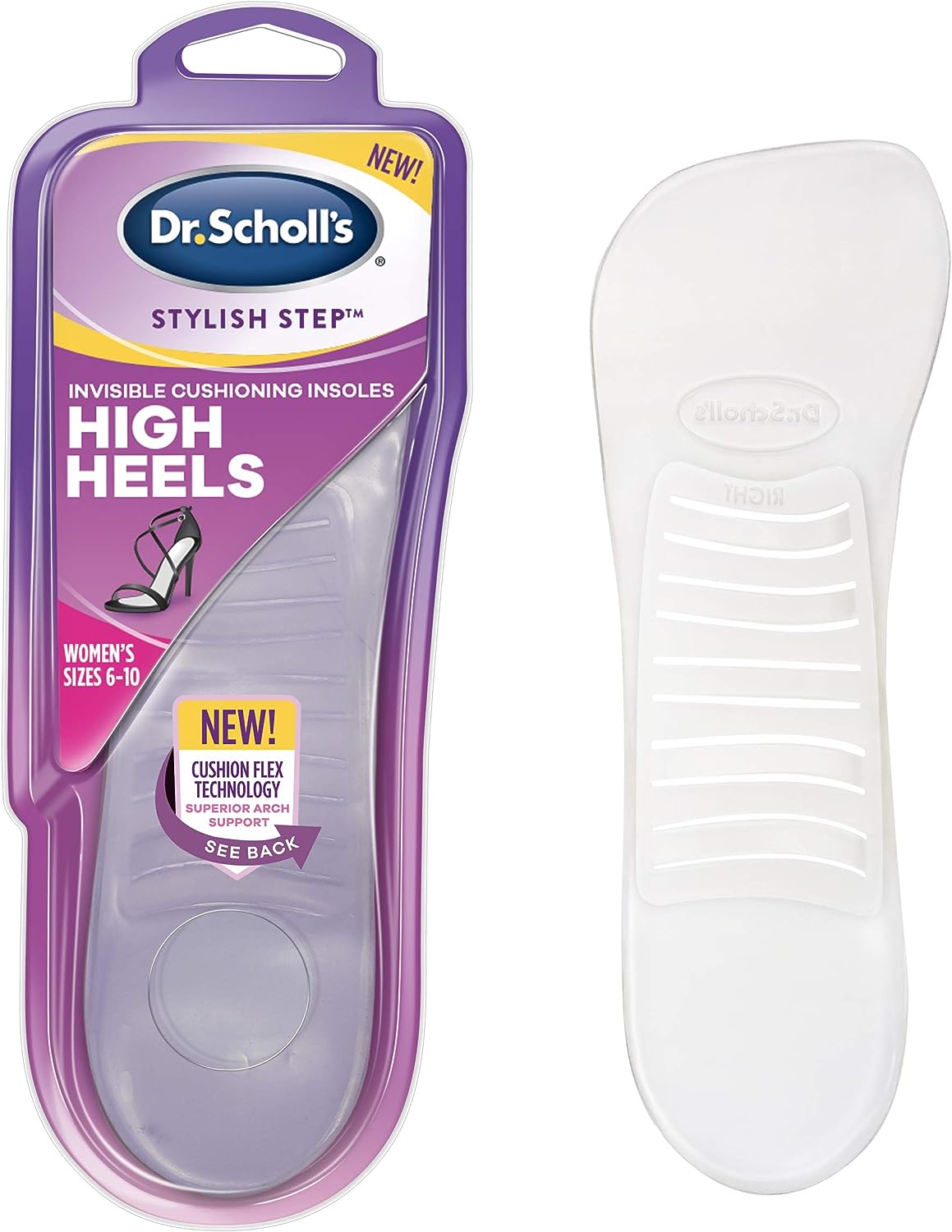 We designed Dr. Scholl's stylish Step invisible cushioning insoles for high heels specifically for women who experience foot pain when wearing high heels. They shift pressure off of your ball of foot, and are clinically proven to help prevent pain from high heels. The package includes one pair of insoles to fit women's shoe sizes 6-10. Dr. Scholl's has been a trusted brand in foot care since 1904 when Dr. William Mathias Scholl, grandson of a cobbler, launched the company under the name Dr. Scholl Inc.