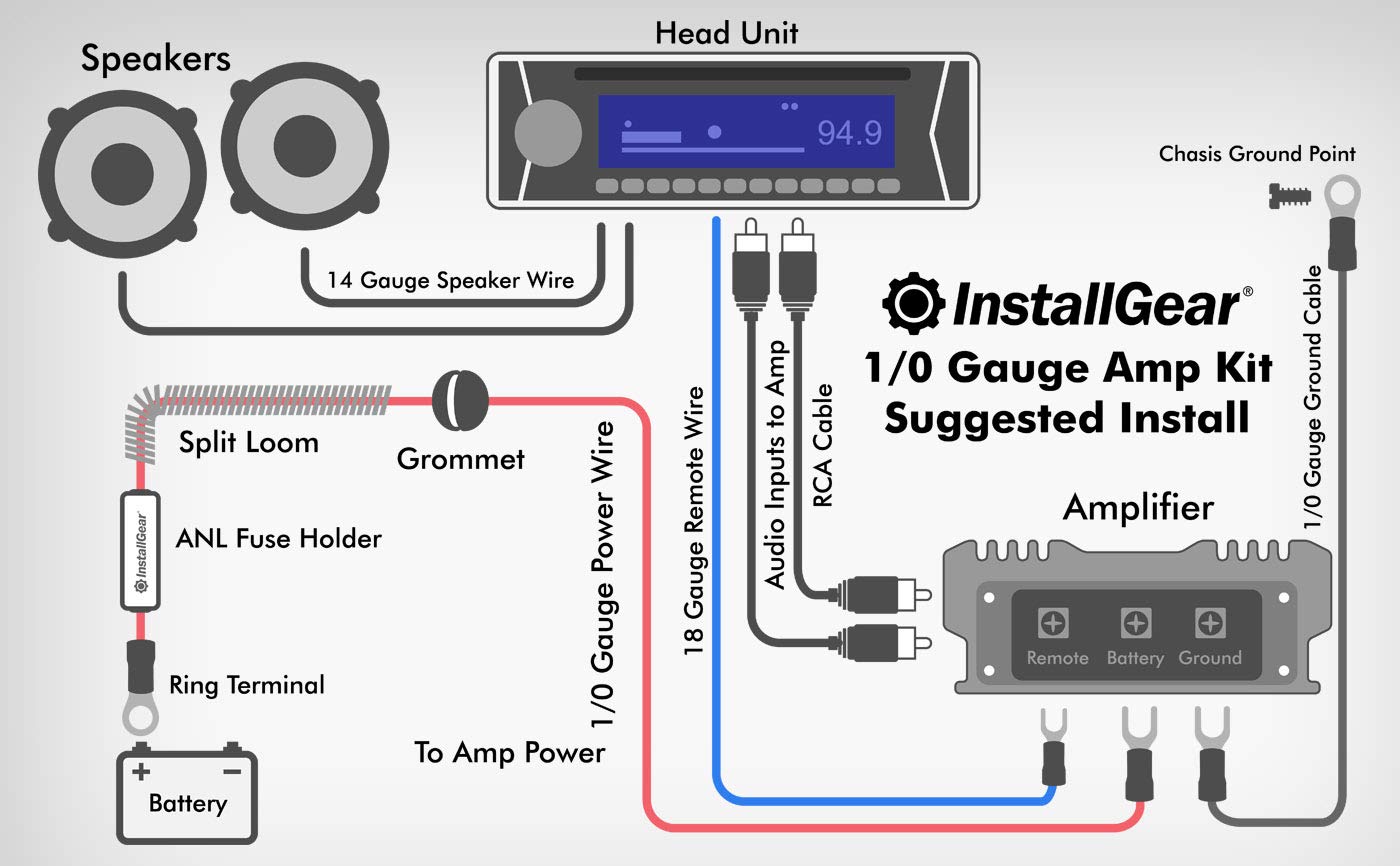 InstallGear 4 Gauge Amp Wiring Kit | Amp Kit with Amplifier Installation Wiring True Spec and Soft Touch Wire | 4 Gauge Wire, Amplifier Wiring Kit, Sub Wiring Kit