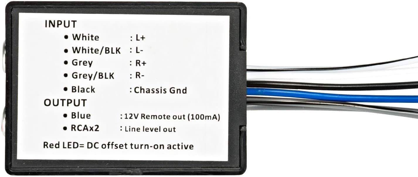 Add an amplifier to nearly any radio with the KISLOC2 Stereo Line-Out Converter. Experience true sonic accuracy at any volume level, with all the sparkling highs and thunderous lows of your original audio. Unlike traditional LOCs, the KISLOC2 is designed without inductors to deliver a completely flat frequency response at all volume levels. Using nothing more than your factory speaker wires, the innovative KISLOC2 automatically converts the speaker signal into both an RCA signal and a powerful 100 milli-amp, 12-volt remote wire using DC offset. Powerful enough to turn on multiple amplifiers, the 12-volt remote wire delivers plenty of power without hunting for a switched 12-volt power source. Accepts up to 55 watts (16 volts) of input signal Fully compatible with standard radios and most smart radios* Delivers up to an 8-volt output signal Flat 20Hz-20kHz frequency range at all volume levels Includes a powerful 100 milli-amp, remote turn-on wire. No 12V power source needed! LED indicator for DC offset turn-on *Amplifier output of smart radio must have 60Ω impedance or lower. See dealer for details.