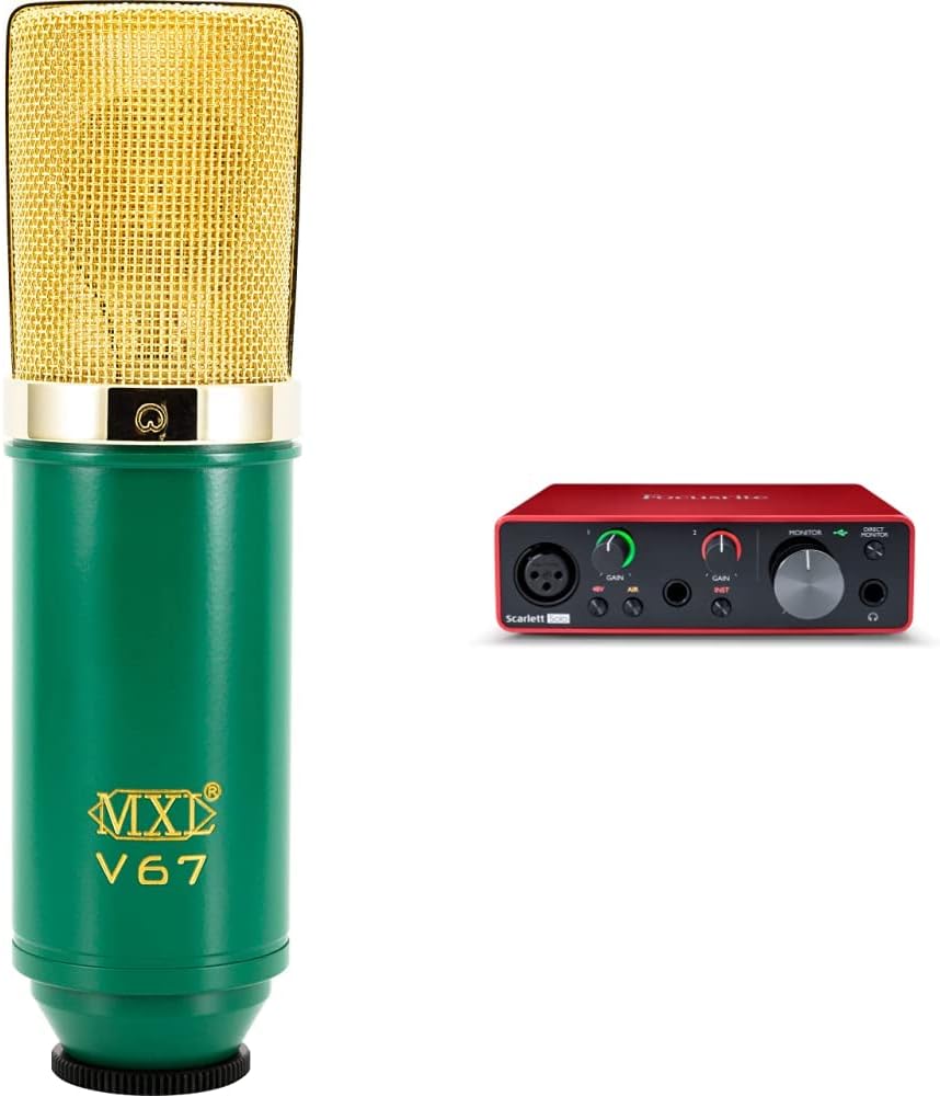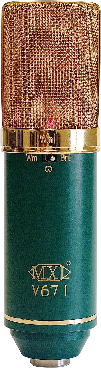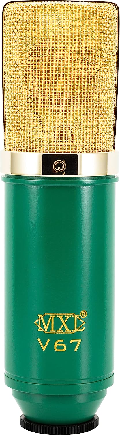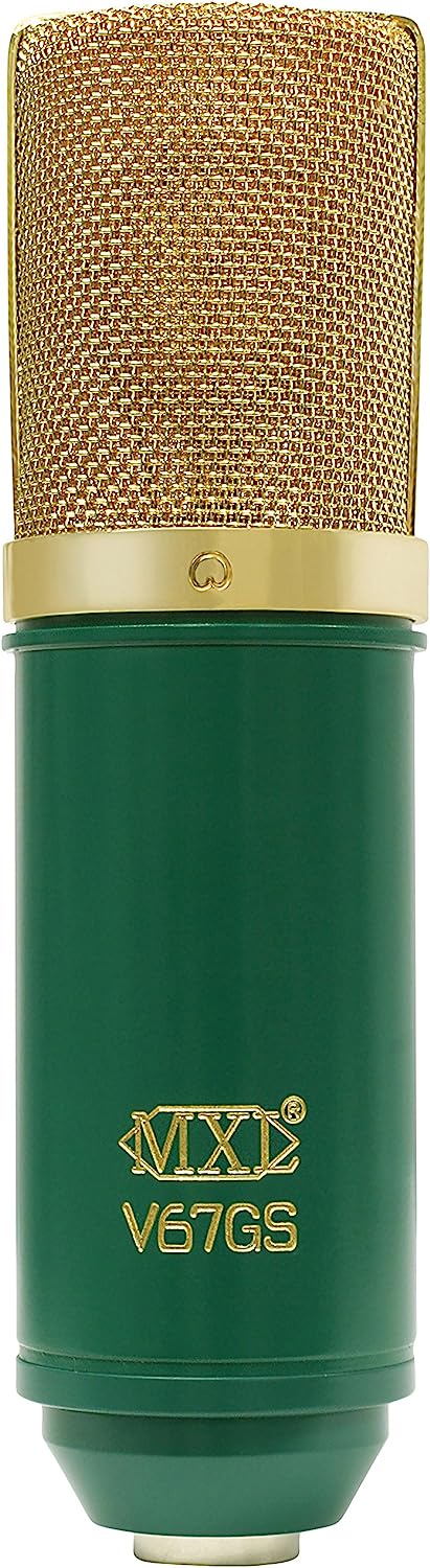 "Old school tube mellow" is often used to describe the sound of the MXL V67G Large Capsule Condenser Microphone. Designed mainly for vocals, the V67G combines Class A FET circuitry and a transformer-coupled output for an open and pure sound. The V67G comes through with killer vocals even in front of a busy mix and has great stage appeal with a gold-plated round grill and distinctive, vintage body. You'll be amazed by the sound this cleverly-designed microphone provides and pleasantly pleased with the price.