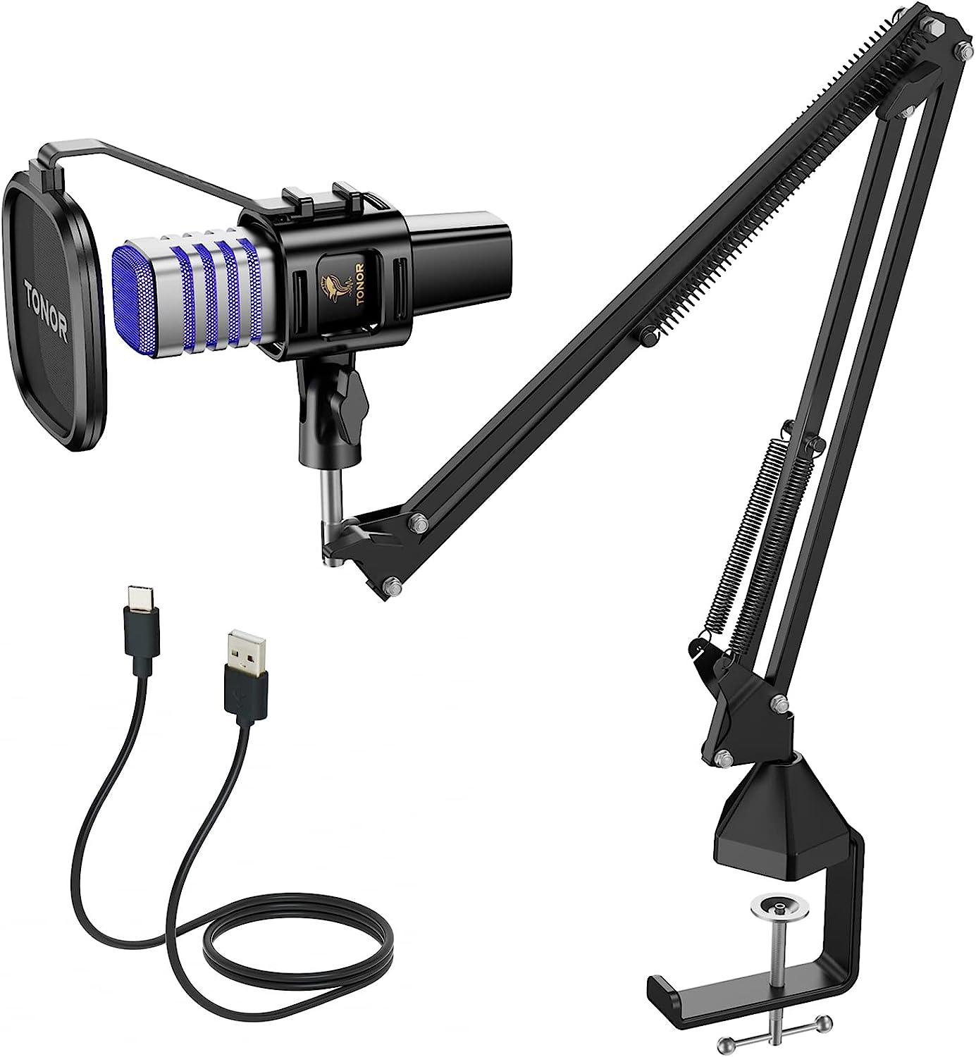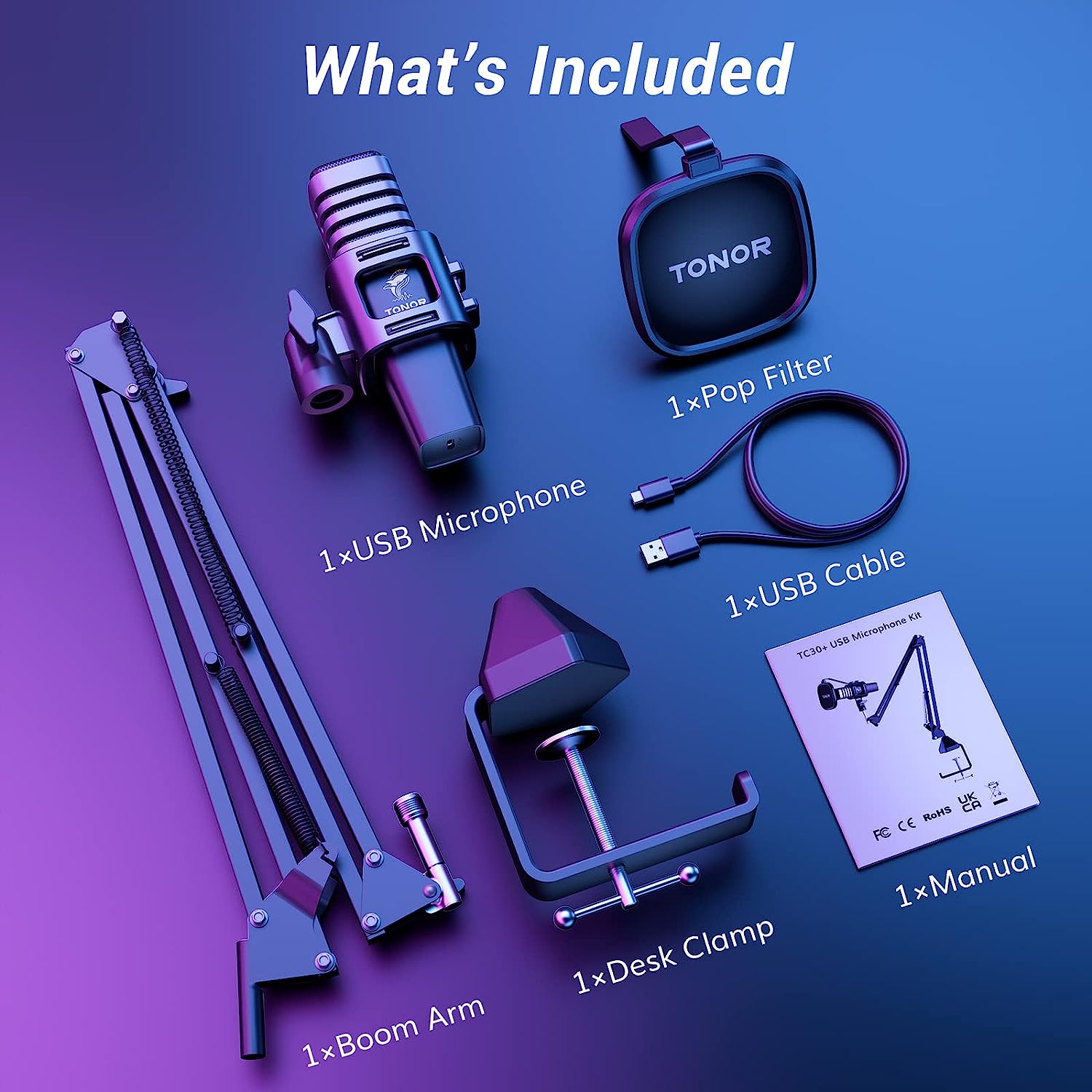 TONOR USB Microphone Kit, PC Podcast Recording Cardioid Condenser Computer Mic Set for Gaming, Streaming, Singing, Voice Over, YouTube, Studio Mic Bundle with Adjustable Arm Stand, TC30+