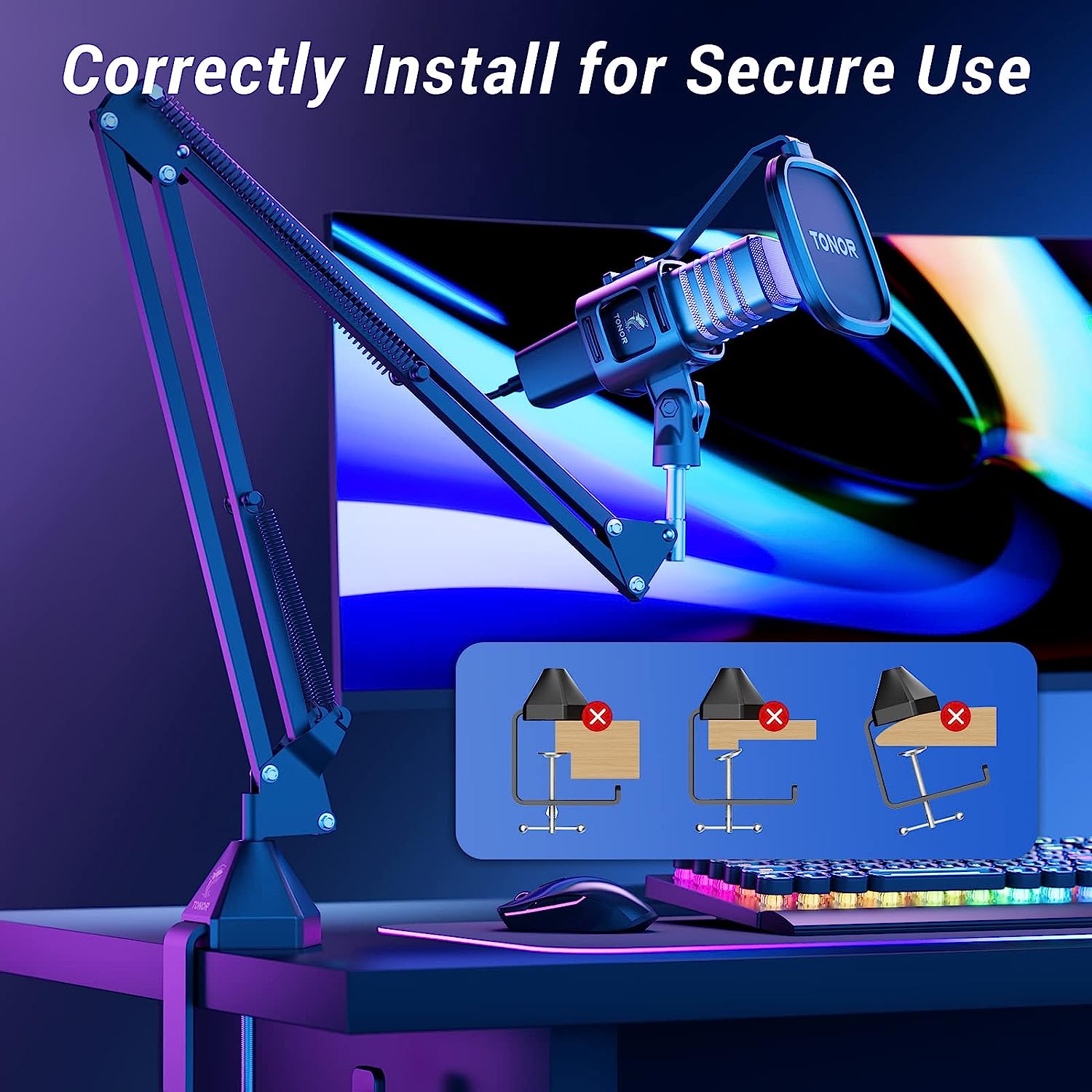 • Excellent Shock Resistance: The upgraded hidden shock mount can effectively reduce noise from mouse and keyboard clicks, or microphone touches. Package includes: 1 x USB Condenser Microphone, 1 x Boom Arm, 1 x Desk Clamp, 1 x Shock Mount, 1 x Pop Filter, 1 x USB Cable, 1 x Manual.