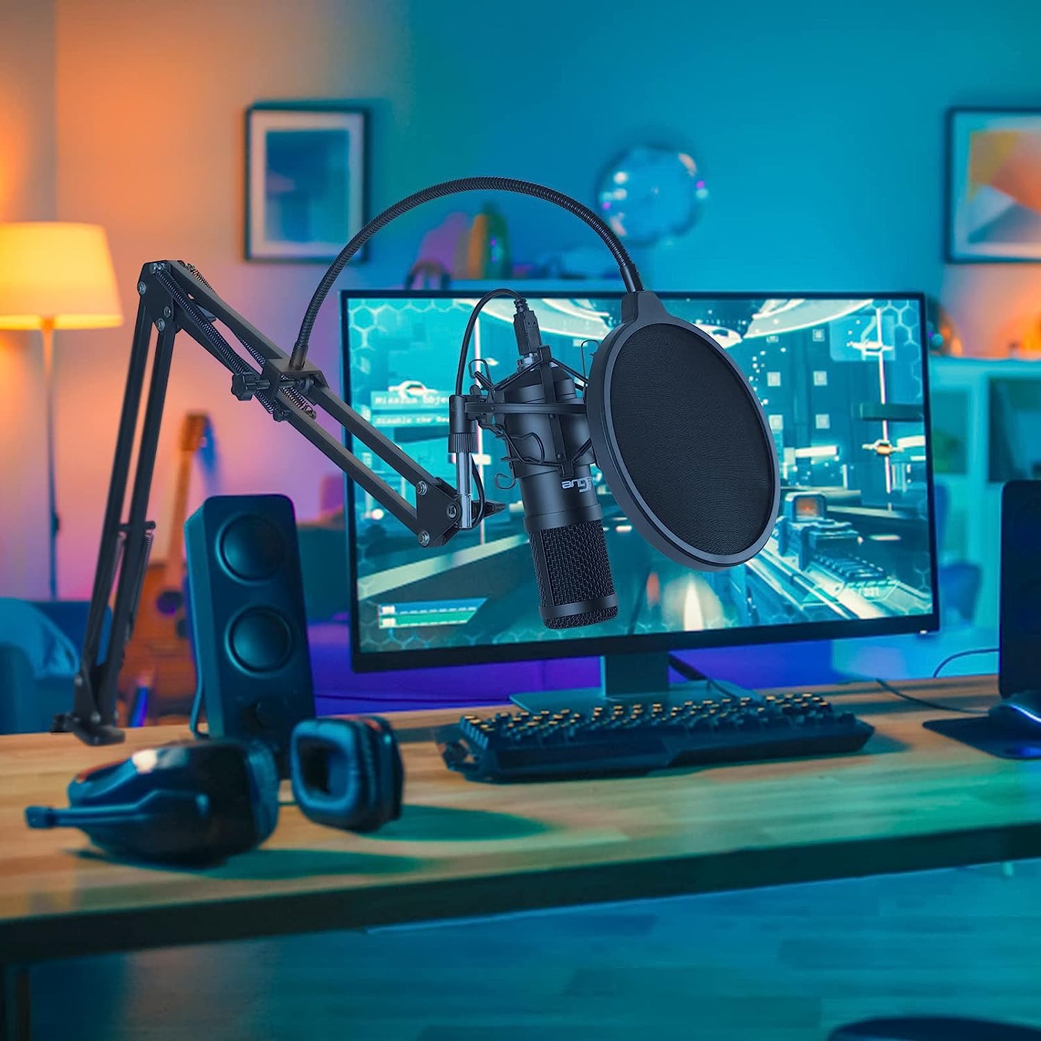 • USER-FRIENDLY DESIGN: With all-steel construction, the scissor arm stand is sturdy and durable. Folding type means it is easy to carry. And it can also be mounted on your table. The mic with arm is easy to adjust every angle and height to match your working position. The pop filter protection reduces more low-frequency noise. The shock mount holds the studio mic steady with a damping function and prevents this recording microphone from accidentally falling.