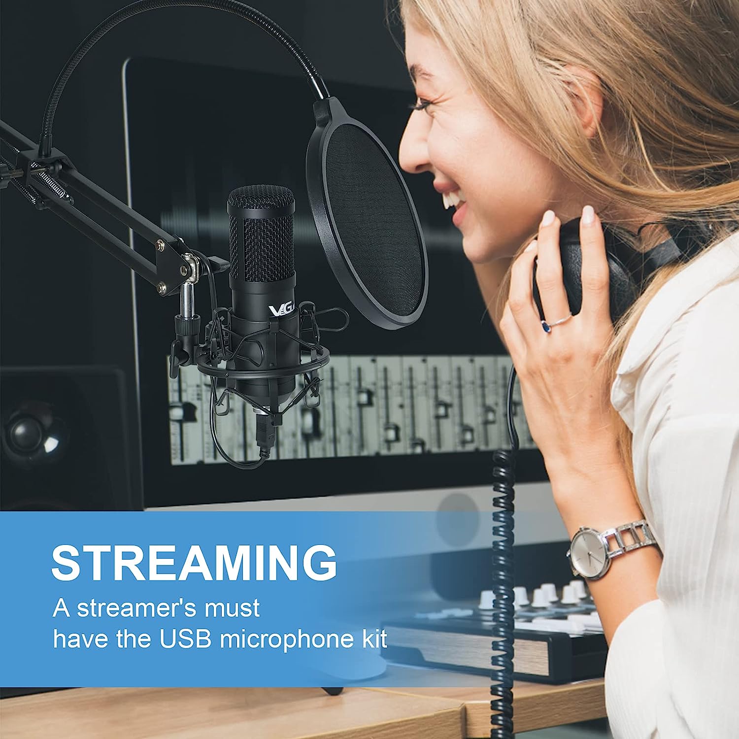 VeGue USB Microphone Kit, 192kHz/24Bit Streaming Podcast PC Condenser Computer Mic Set for Gaming, YouTube Video, Recording Music, Voice Over, Studio Mic with Adjustable Arm Stand (VG-016)