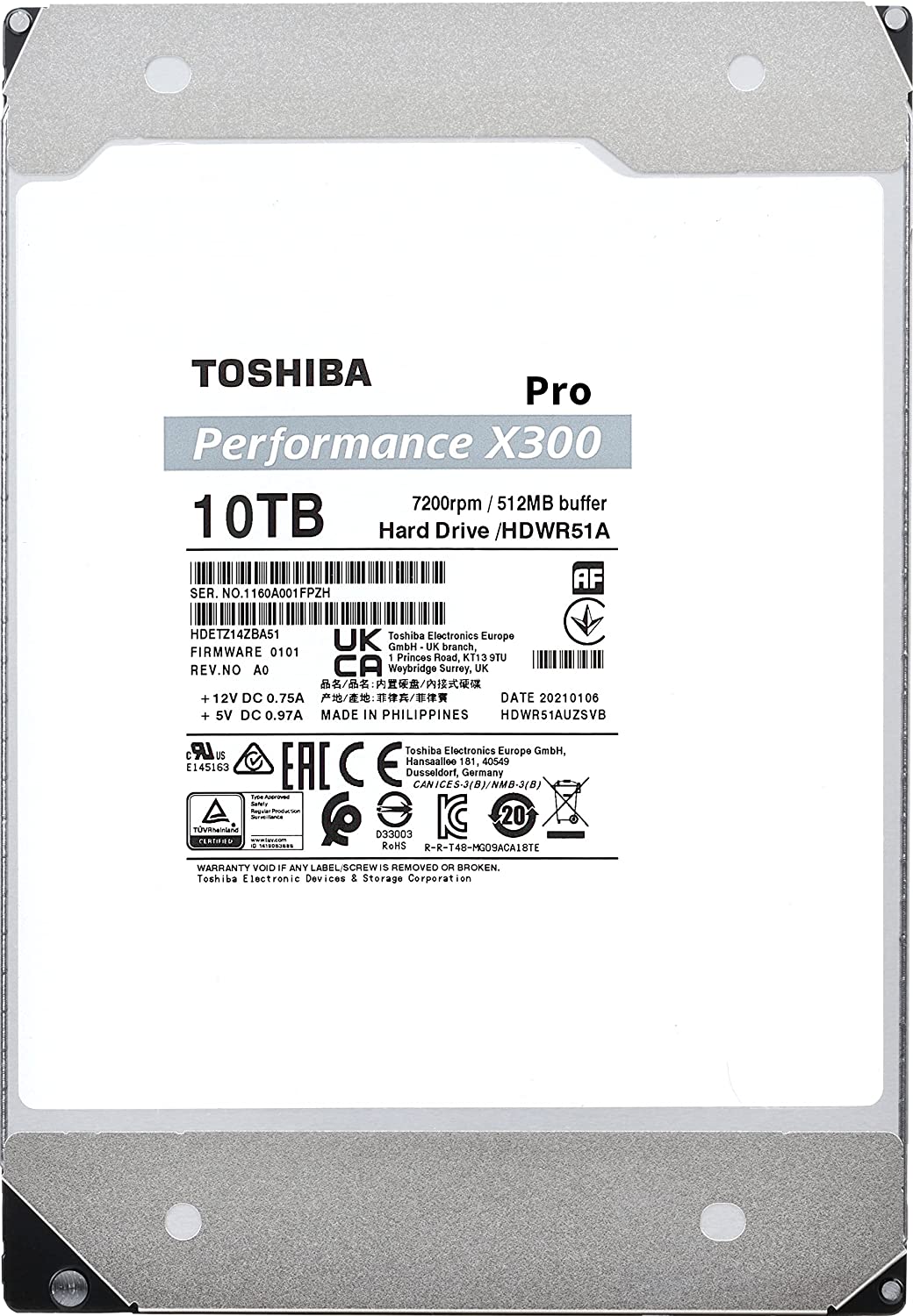 Toshiba X300 PRO 14TB High Workload Performance for Creative Professionals 3.5-Inch Internal Hard Drive – Up to 300 TB/Year Workload Rate CMR SATA 6 GB/s 7200 RPM 512 MB Cache - HDWR51EXZSTB