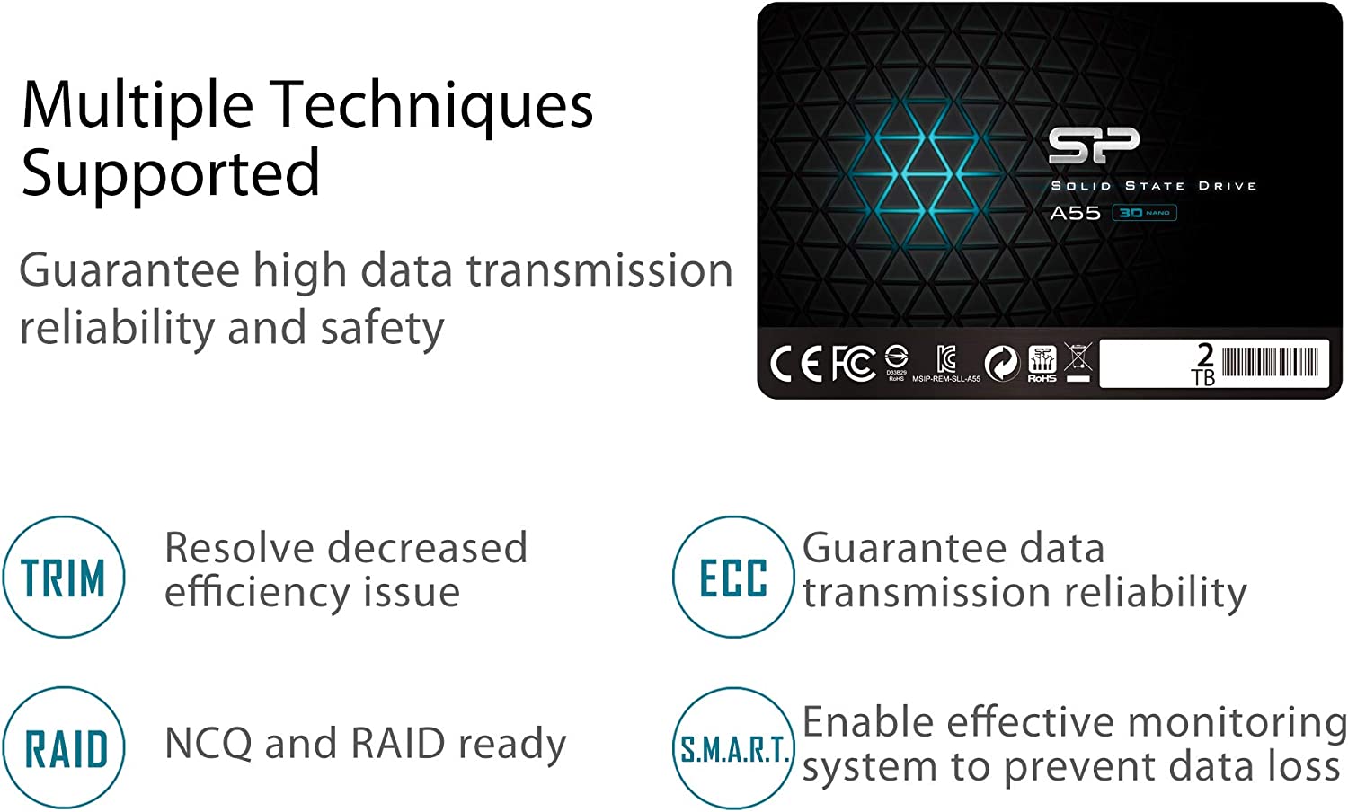 SP 1TB SSD 3D NAND A55 SLC Cache Performance Boost SATA III 2.5" 7mm (0.28") Internal Solid State Drive (SP001TBSS3A55S25)