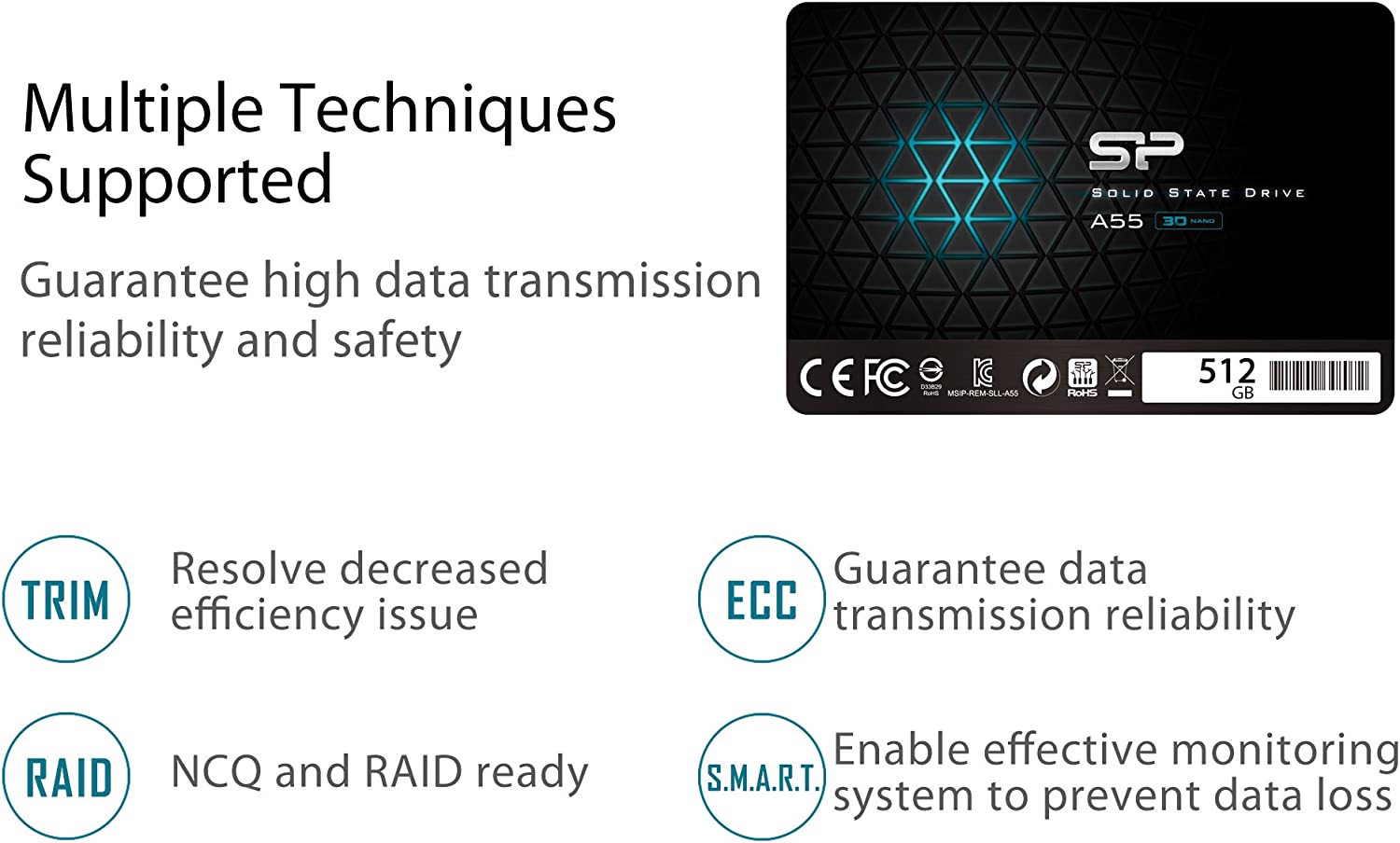The A55 is built with Bad Block Management, which can continually monitor and replace bad blocks to keep your system in good condition with prolonged lifespan of a SSD.