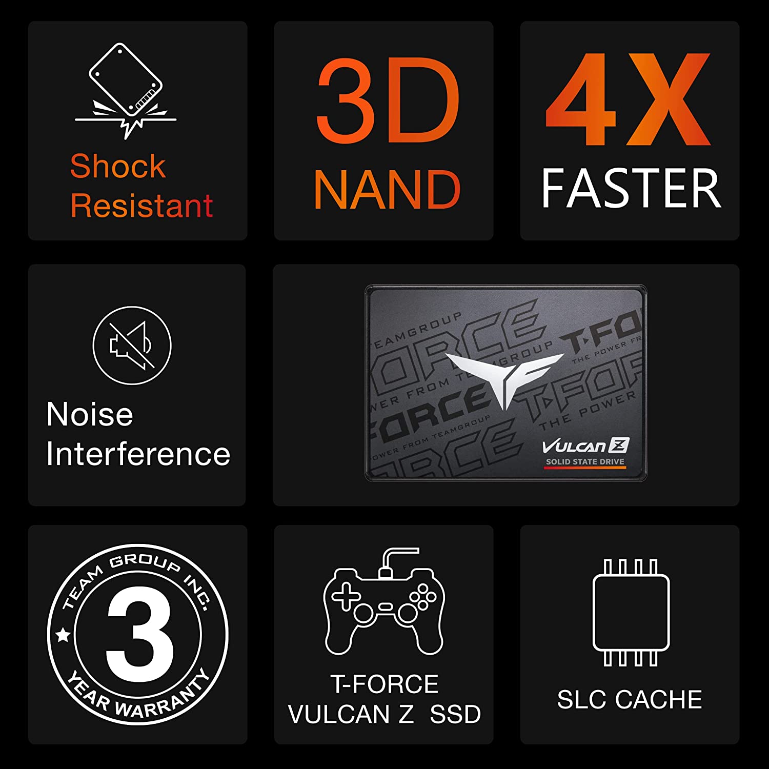 TEAMGROUP T-Force Vulcan Z 1TB SLC Cache 3D NAND TLC 2.5 Inch SATA III Internal Solid State Drive SSD (R/W Speed up to 550/500 MB/s) T253TZ001T0C101