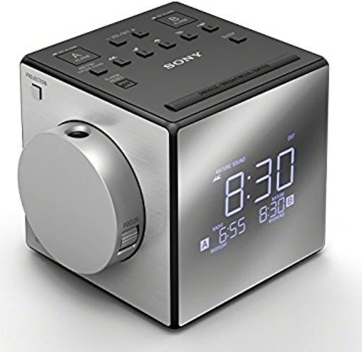 See the time without lifting your head by projecting the time on your wall or ceiling. The convenient swivel projector can tilt up to 180 degrees, enabling you to project the time virtually anywhere, while the adjustable focus knob keeps it all clear. For convenience, the projector can be turned on and off as desired.