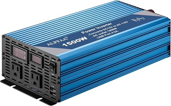 1500W Pure Sine Wave Inverter 12V to 110V with Built-in 5V/2.1A USB Port, Hardwire Terminal, LCD Display, 12V DC to 120V AC Converter for Home, RV, Truck (1500W)