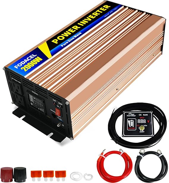 2000W Pure Sine Wave Inverter 12V DC to 120V AC, for RV and Camper Systems, Solar Systems with MPPT and for Home and Outdoor Emergency Power Supply with Smart LCD Display, Remote Controller