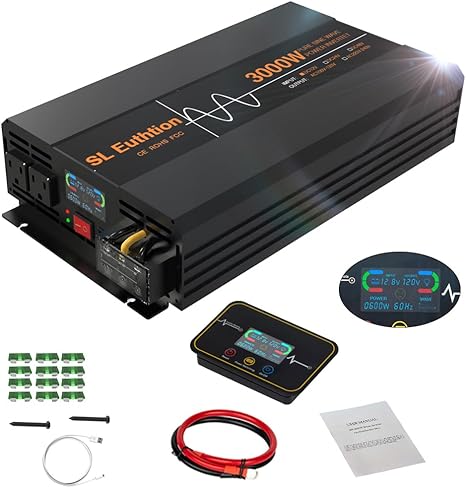 3000W/6000W(Peak) Pure Sine Wave Car Power Inverter 12V DC to 120V AC 60HZ with LCD Display, USB Port, Wireless Remote ControlŠ__10M) for Car Home Laptop Truck
