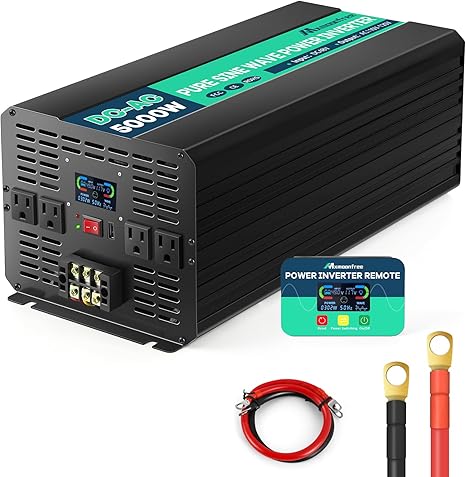 5000W 48V Pure Sine Wave Power Inverter 48V DC to 110V AC with Wireless Remote Control LCD Display 4 AC Outlets, 1 USB and Terminal Blocks for RV Truck Cabin Off Grid