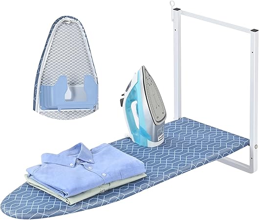 APEXCHASER Wall Mounted Ironing Board with Iron Holder, 36" X 12" Foldable Ironing Board for Small Spaces, Compact Mount Fold Down Iron Board, Removable Heat Resistant Cover Dark Blue